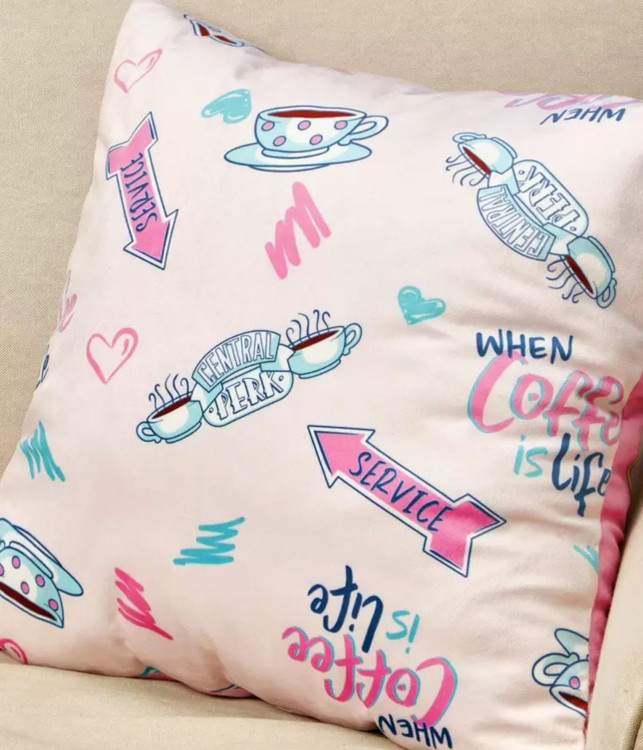 FRIENDS X SHEIN Double-Sided Coffee & Letter Graphic Cushion Cover Without Filler, Gifts