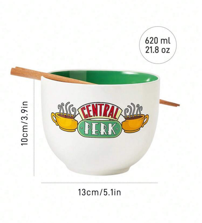 FRIENDS X SHEIN 1pc Cute Cartoon Ramen Bowl With 1 Pair Chopsticks Included