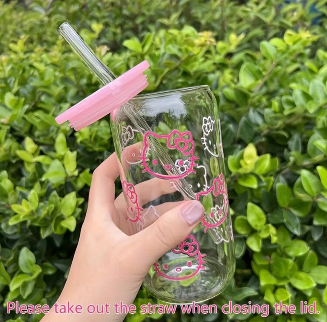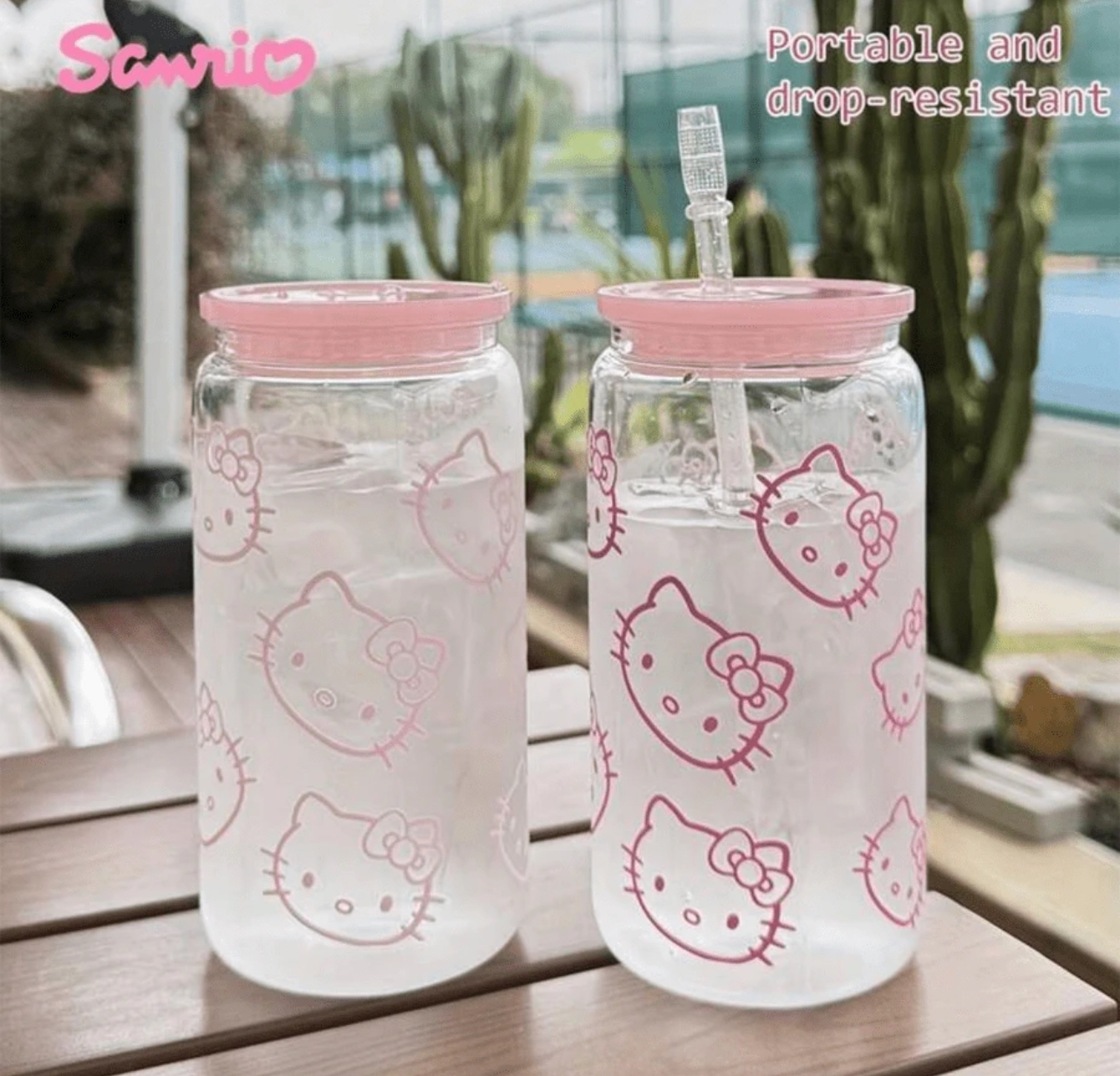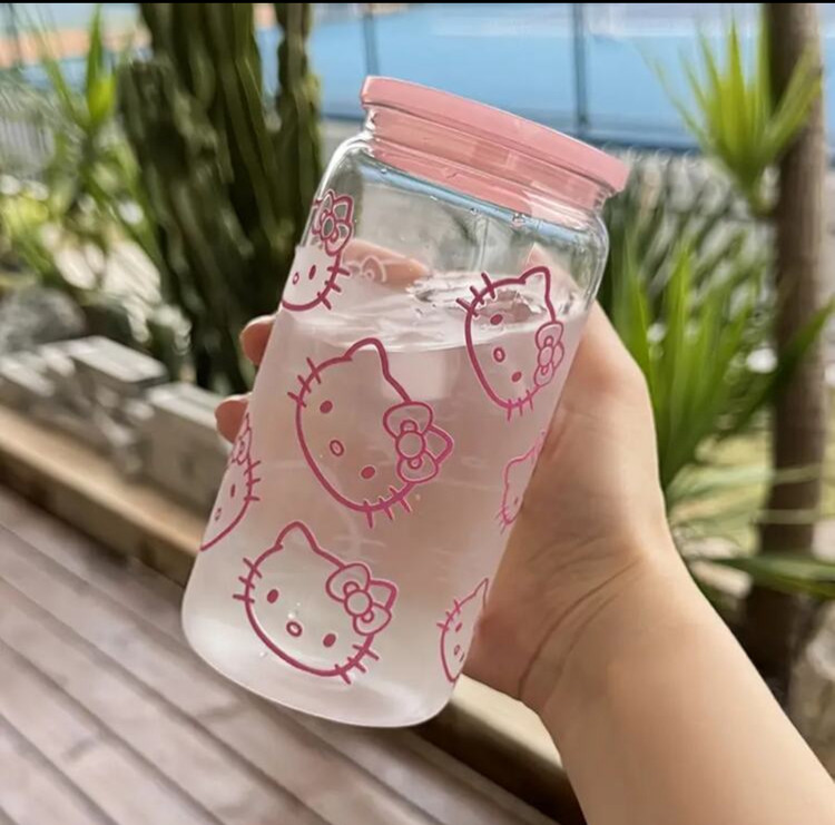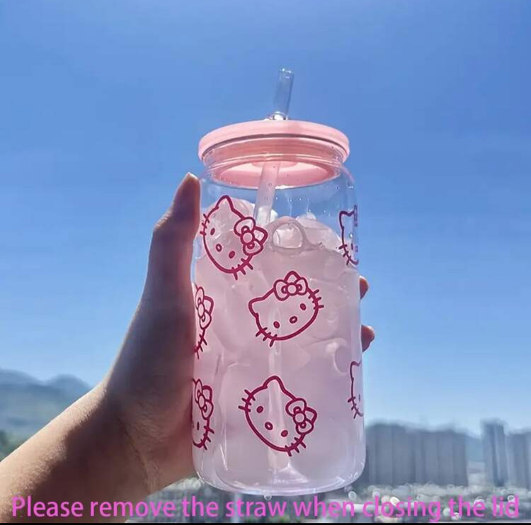 - مدل: Hello Kitty Summer Transparent Pink Rose Water Bottle with Straw