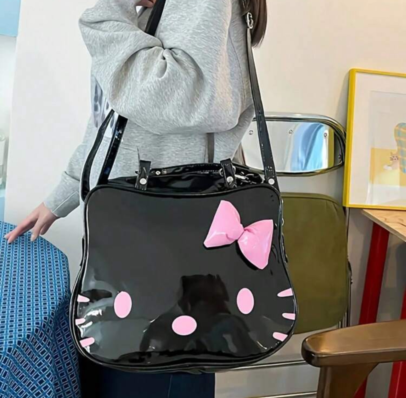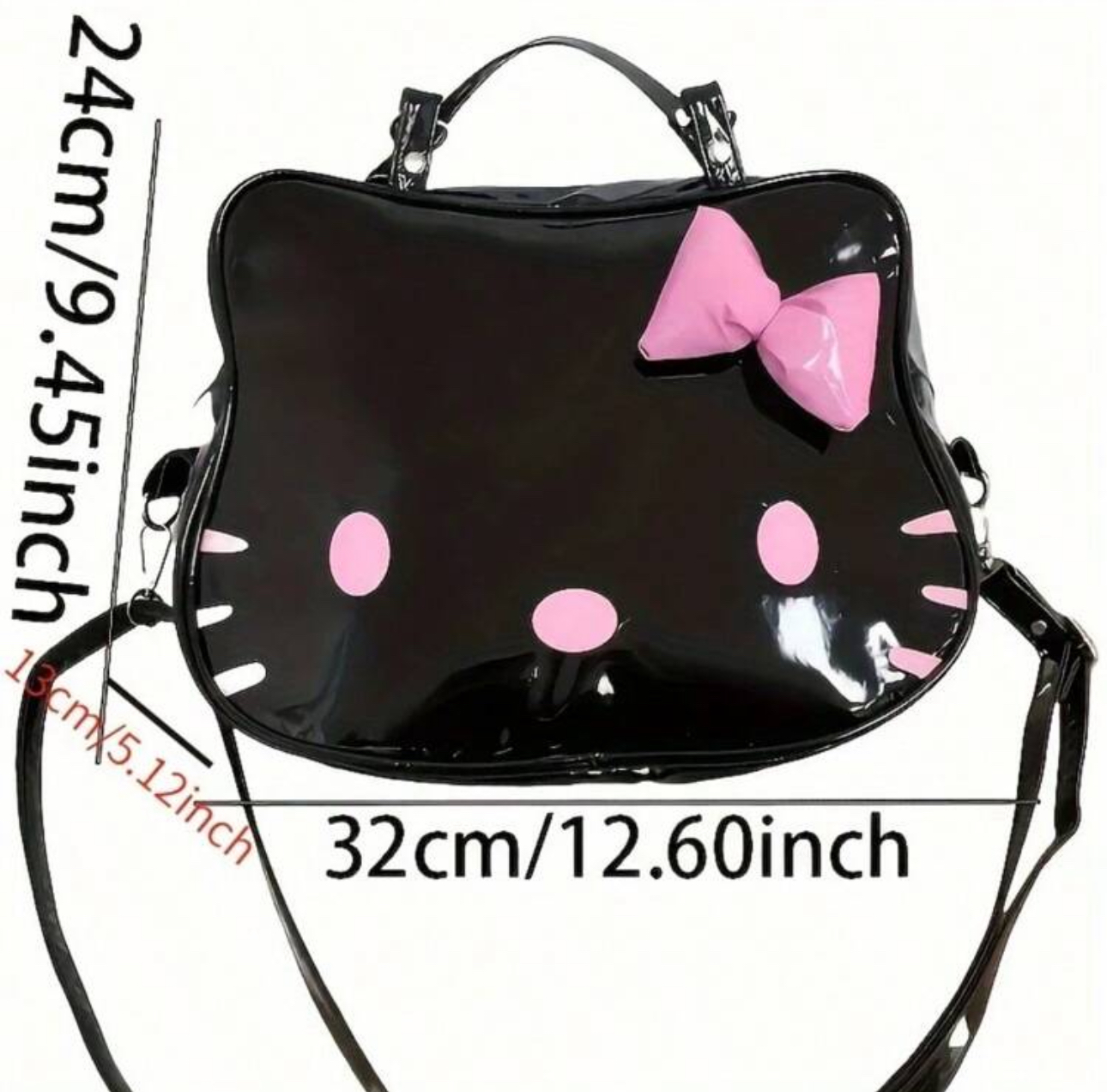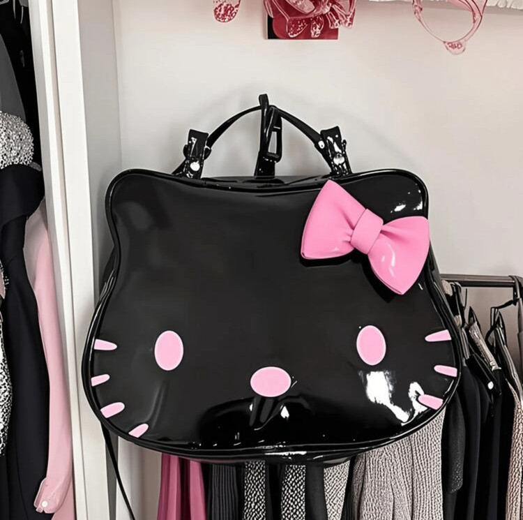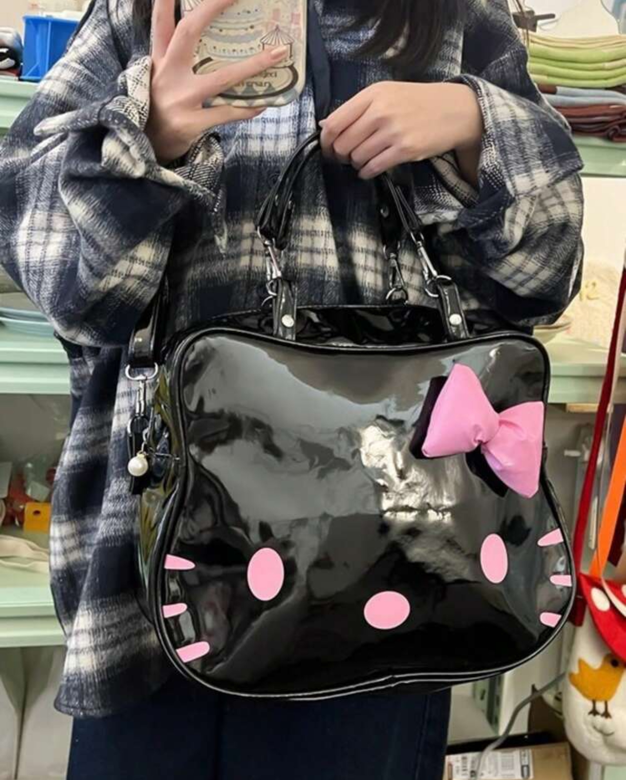 کولهپشتی مشکی هلو کیتی با پاپیون صورتی – PU، زیپدار، مناسب محل کار، خرید روزانه و دانشگاه