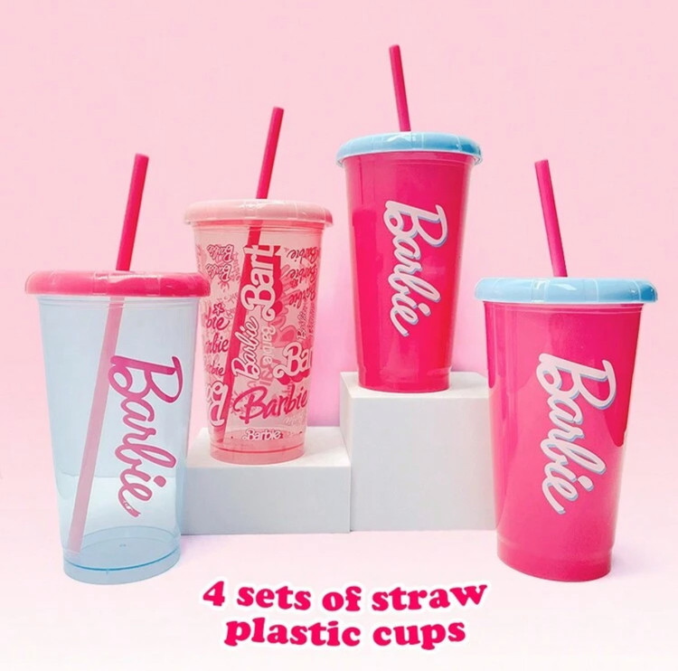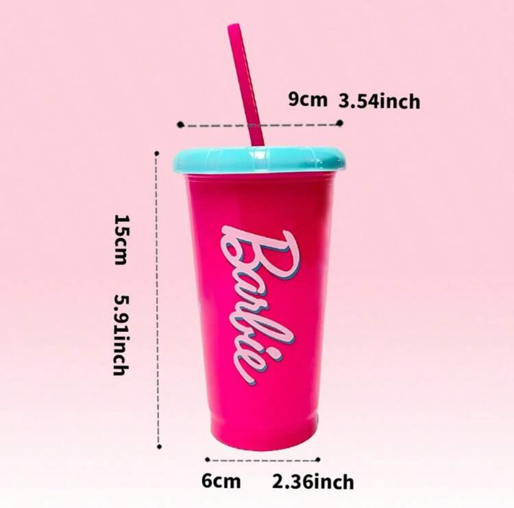 نام محصول: ست لیوان پلاستیکی نیدار مینیسو سری درخشش نور خورشید باربی (Miniso Barbie Sunlight Shimmer Series Straw Plastic Cup Set)