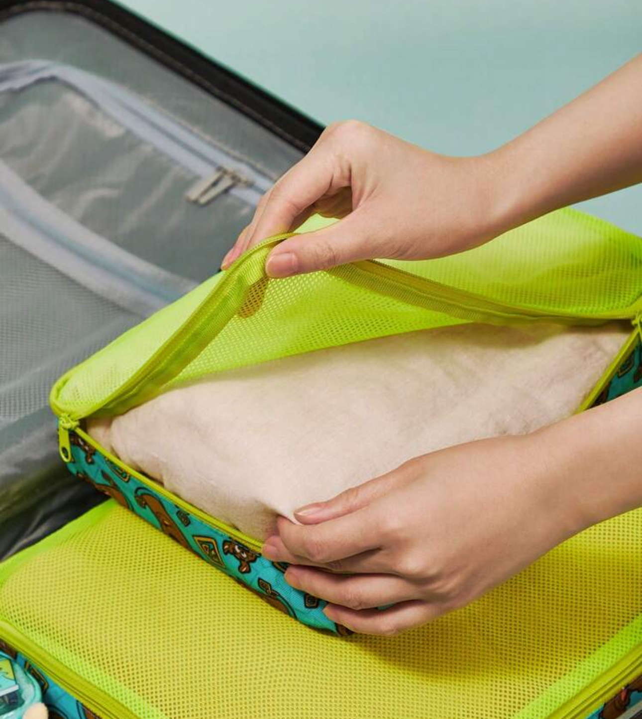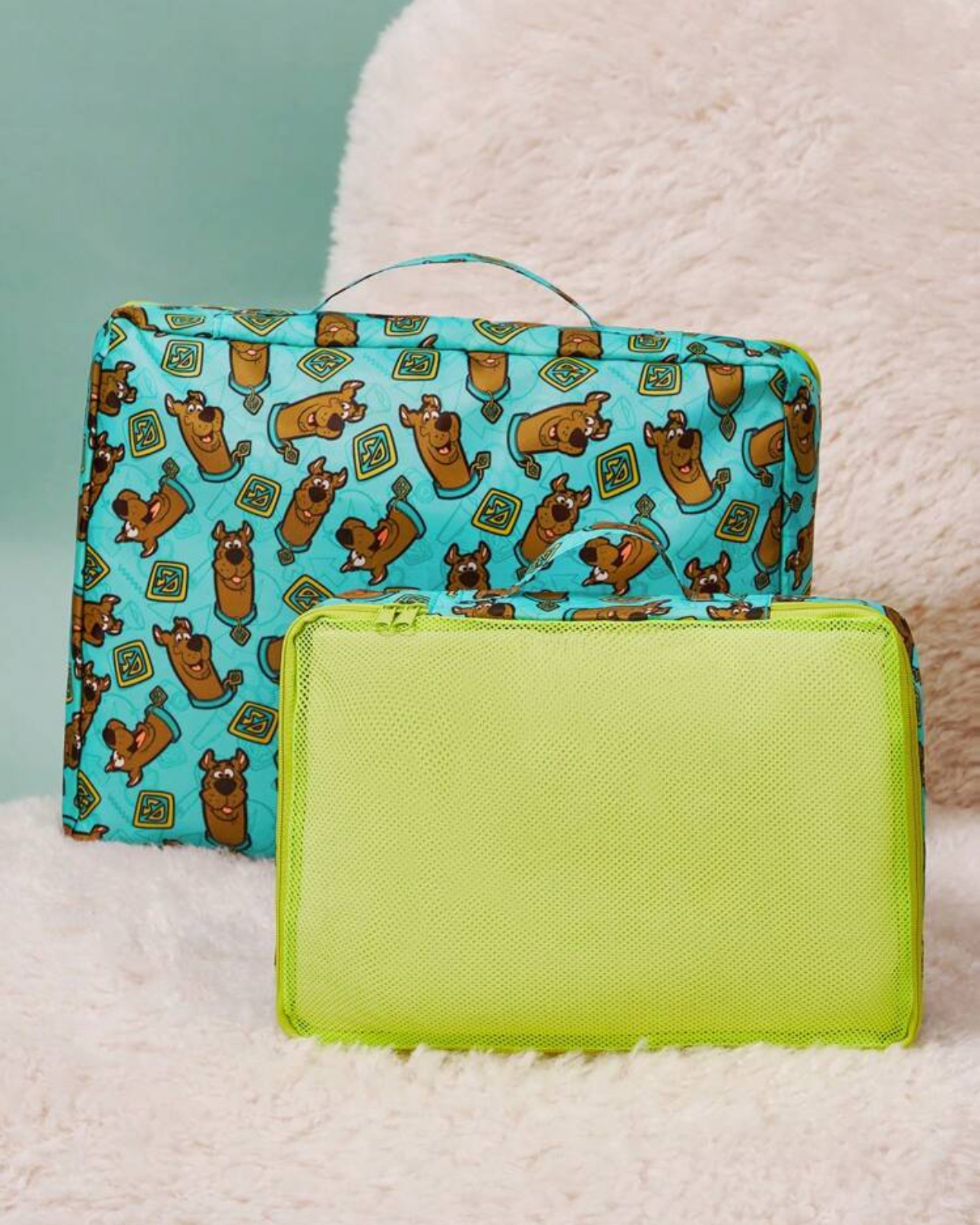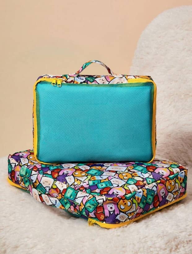 ADVENTURE TIME X SHEIN 2pcs Set All-Over Print Contrast Mesh RPET Polyester Travel Storage Bag 🎒✨