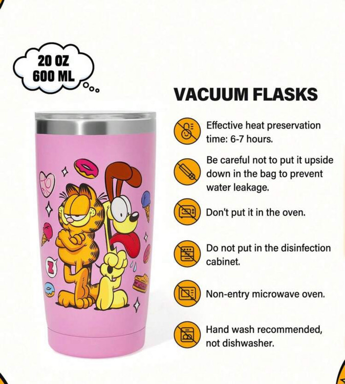 یک انتخاب جذاب و کاربردی برای طرفداران گارفیلد! این لیوان استیل با طراحی کارتونی خاص و کیفیت بالا، همراه همیشگی شما در خانه، محل کار و سفر خواهد بود.