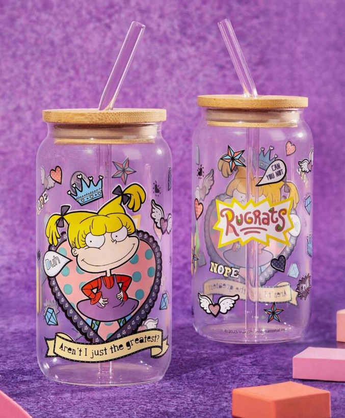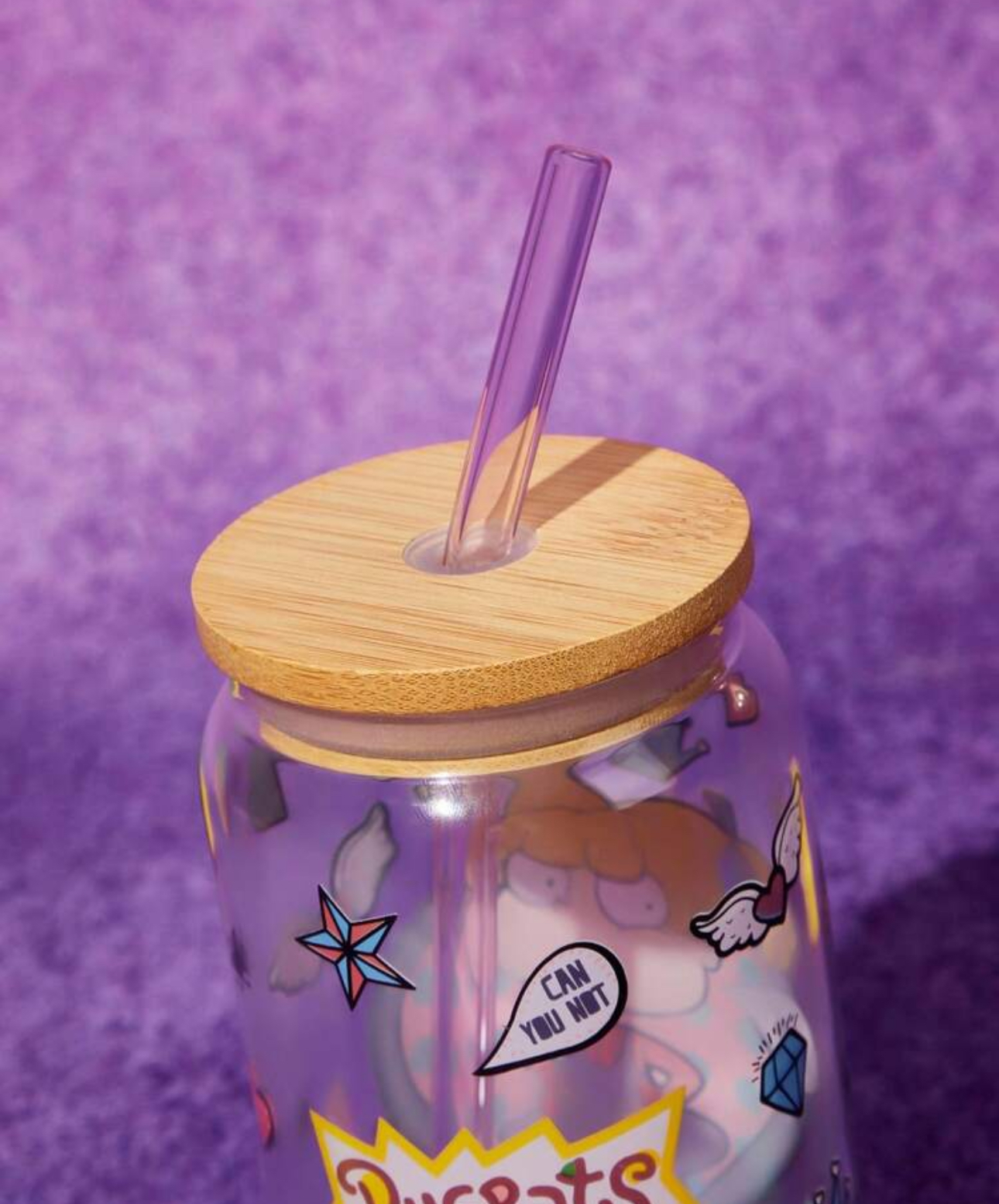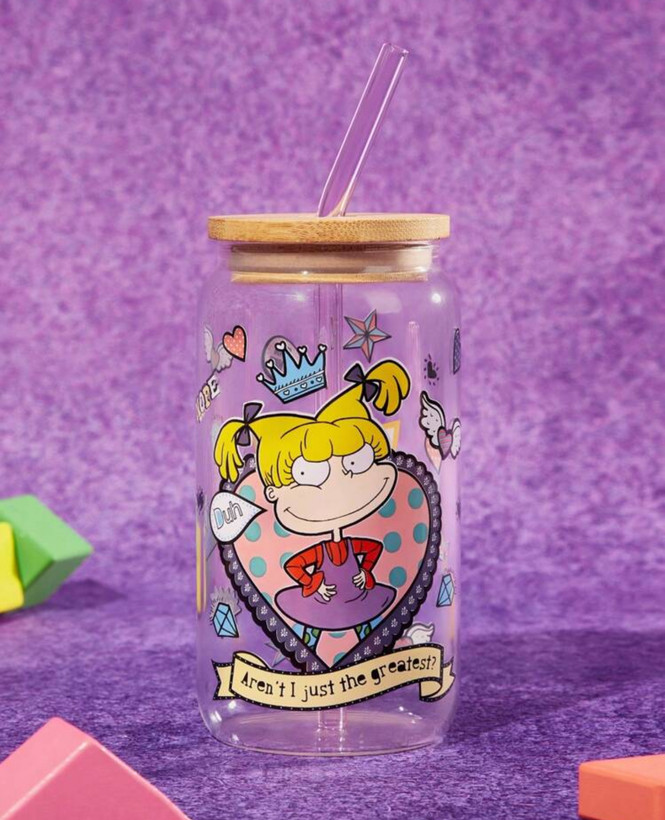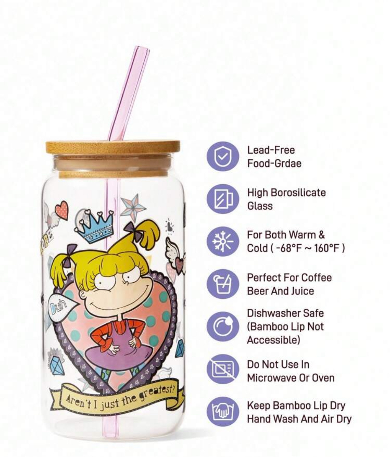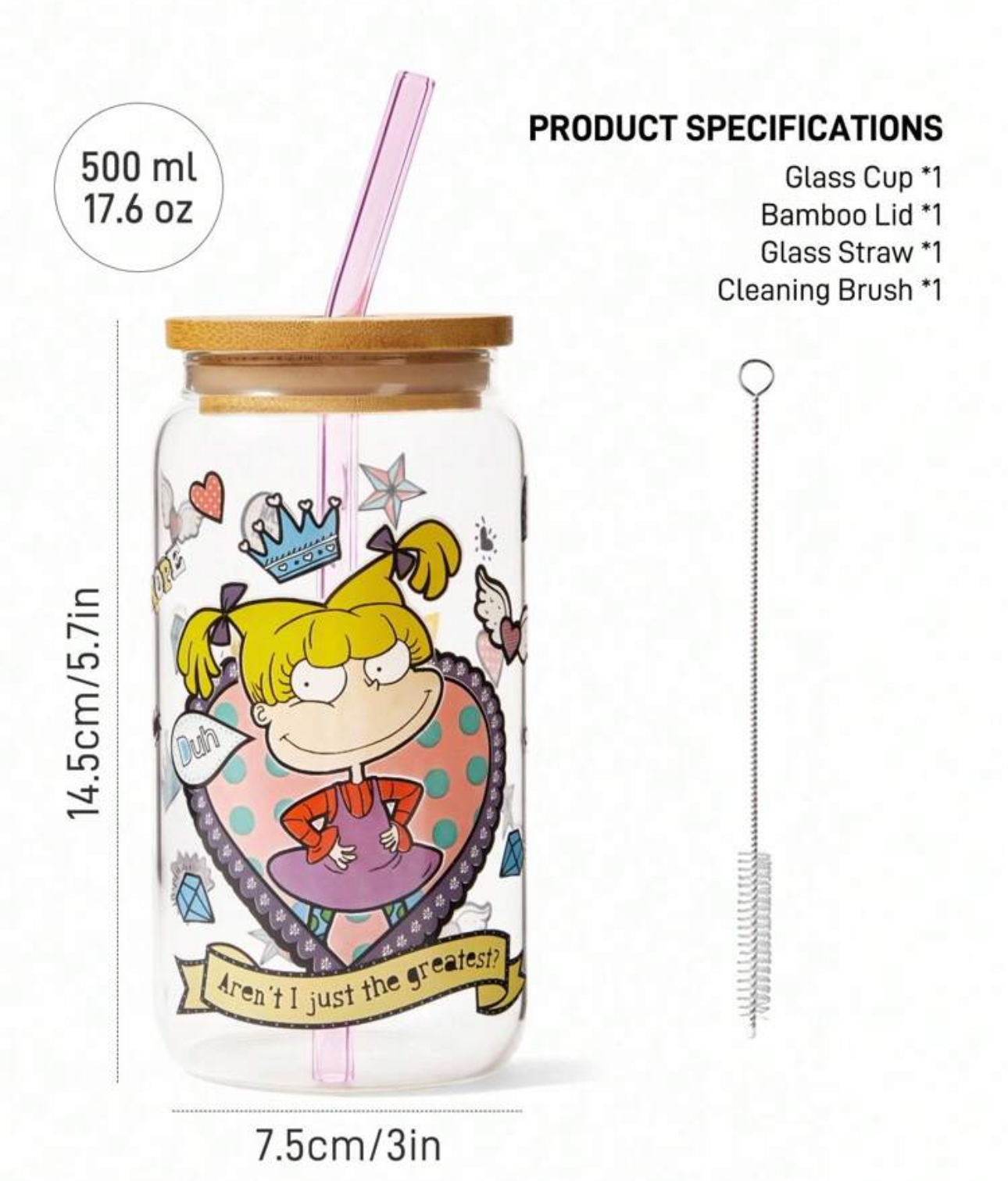 لیوان شیشهای نیک 90s X SHEIN با طرح کارتونی (500ml / 17.6oz)