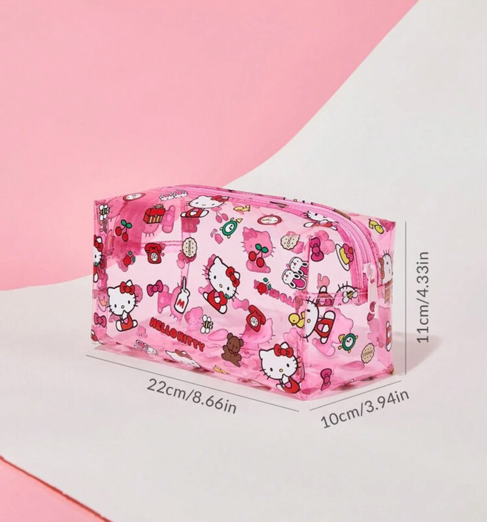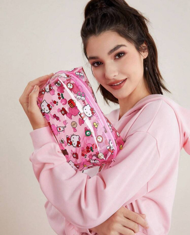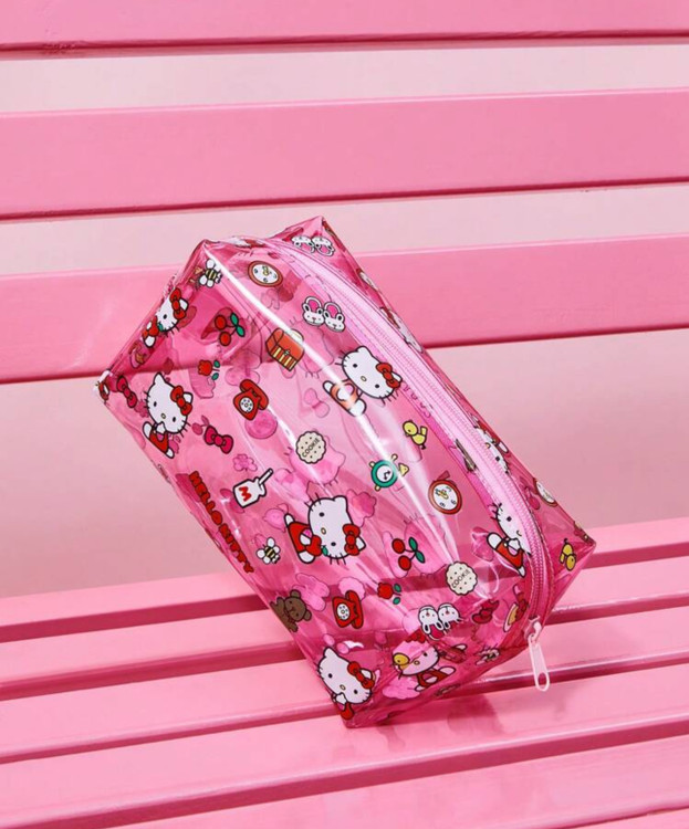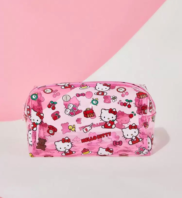 HELLO KITTY AND FRIENDS | SHEIN کیف لوازم آرایش صورتی نیمهشفاف