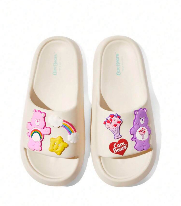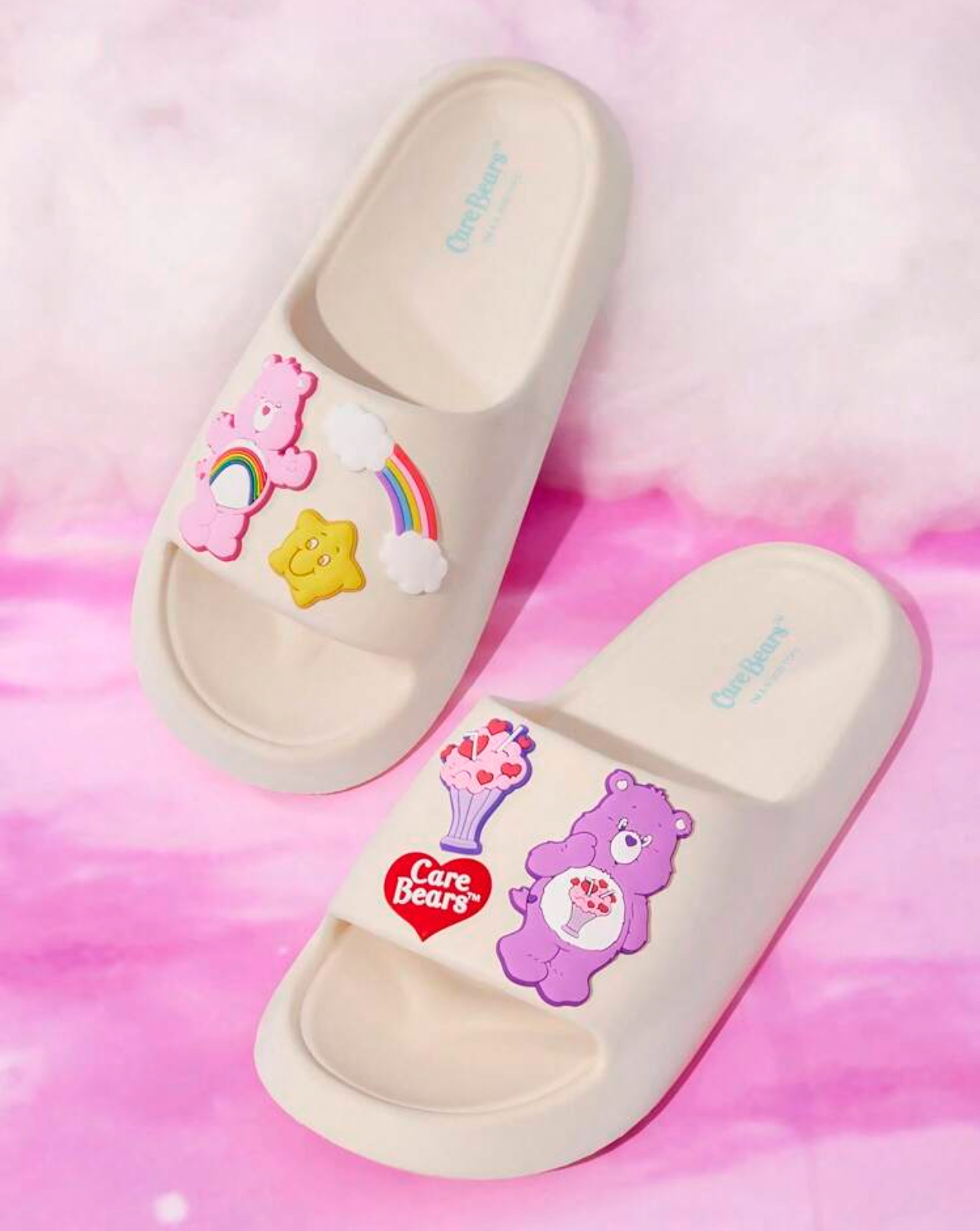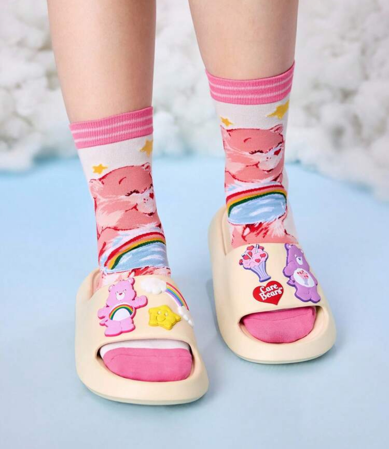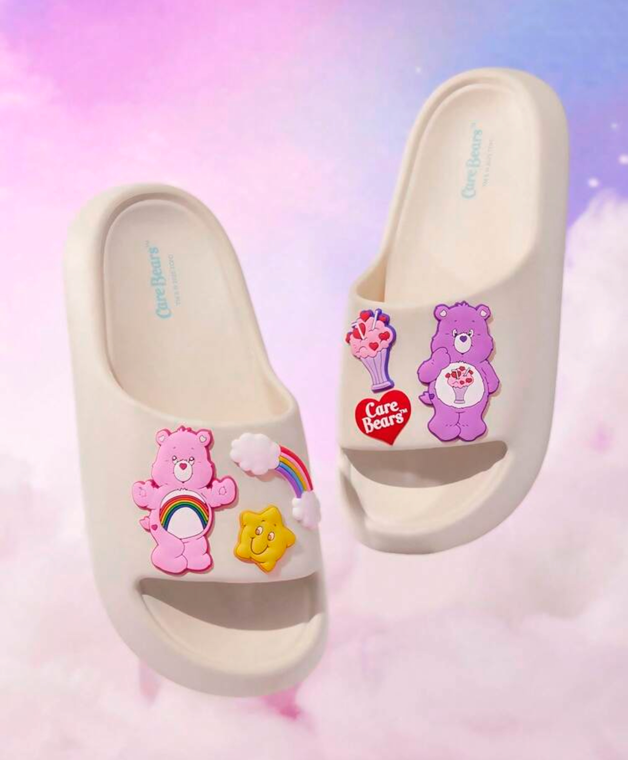 دمپایی زنانه سفید SHEIN X Care Bears طرح رنگینکمان و قلب