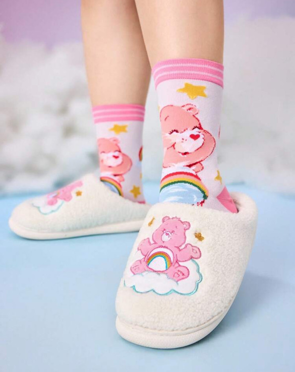 Care Bears Cute Cartoon Embroidered White Pink Women Non-Slip Indoor Slippers