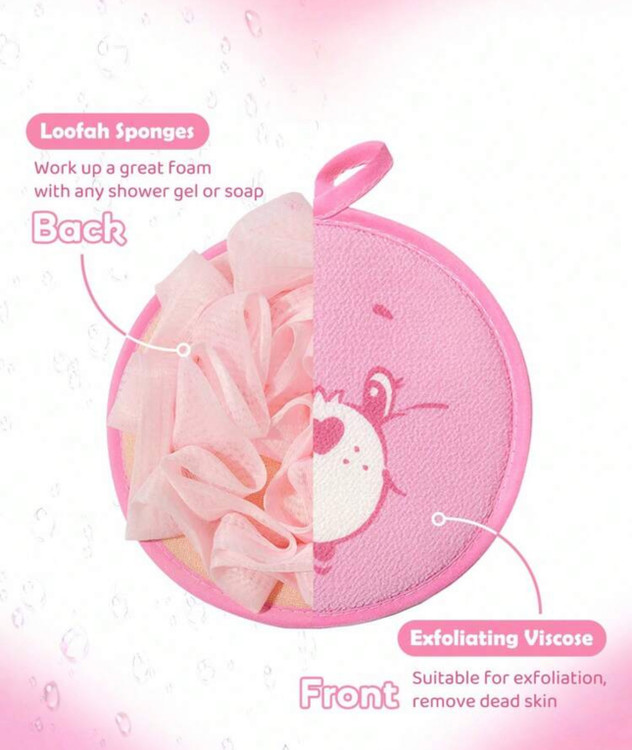 Care Bears 1pc Pink Bear Shower Loofah, Double-Sided, One Side Lathers