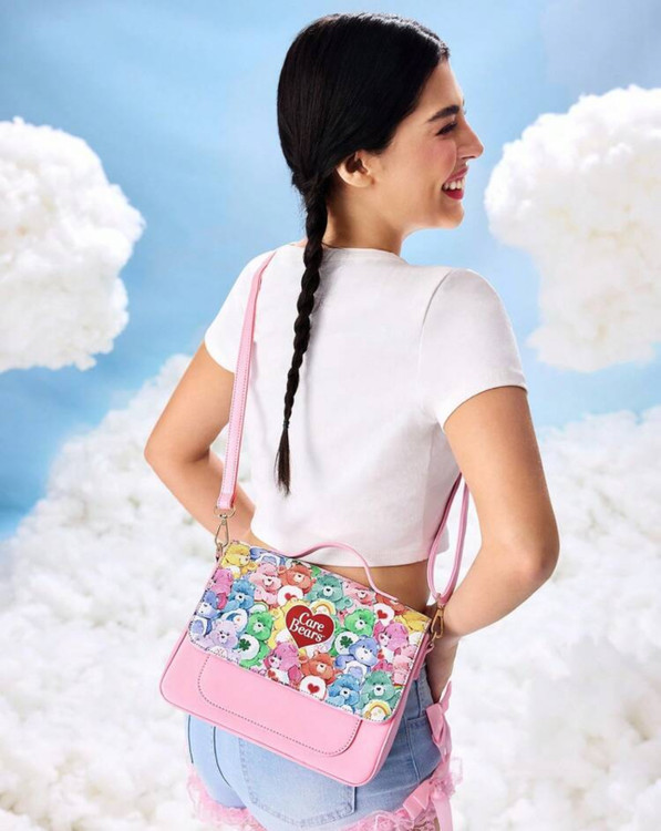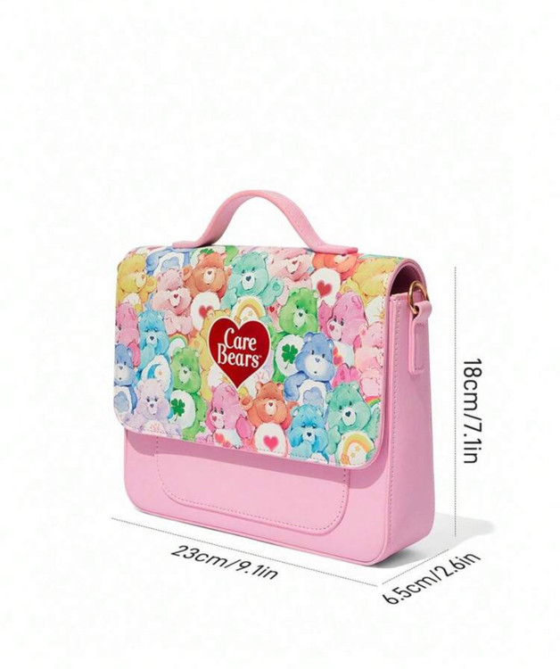 Care Bears 1pc Cartoon Print PU Leather Handbag With Adjustable Shoulder Strap