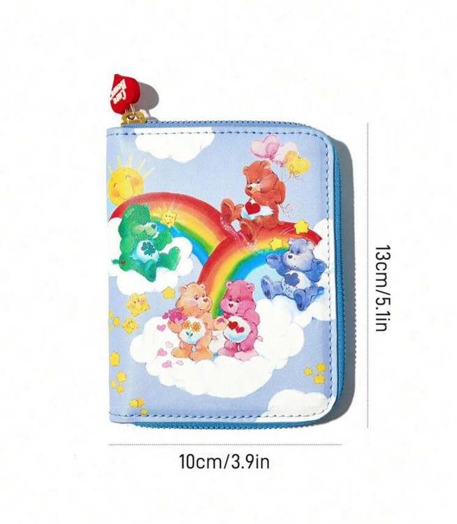 Care Bears 1pc Cute Cartoon Bear Pattern Zipper PU Leather Short Wallet