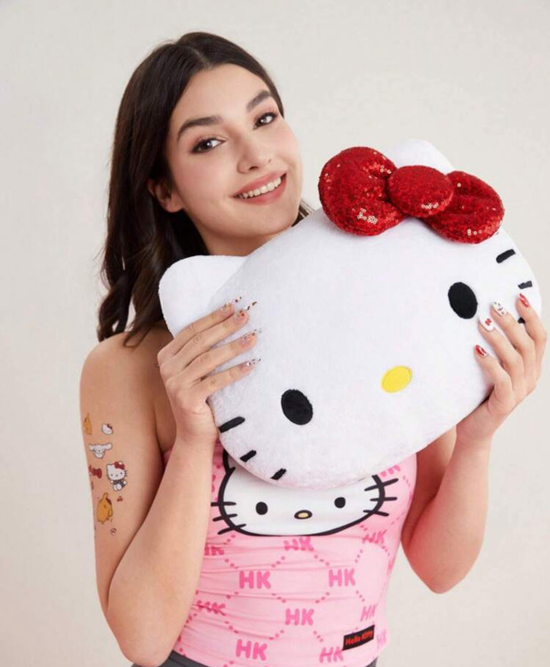 HELLO KITTY AND FRIENDS | SHEIN Cartoon Bow Decor Cat Shaped Plush Pillow