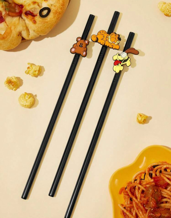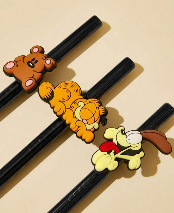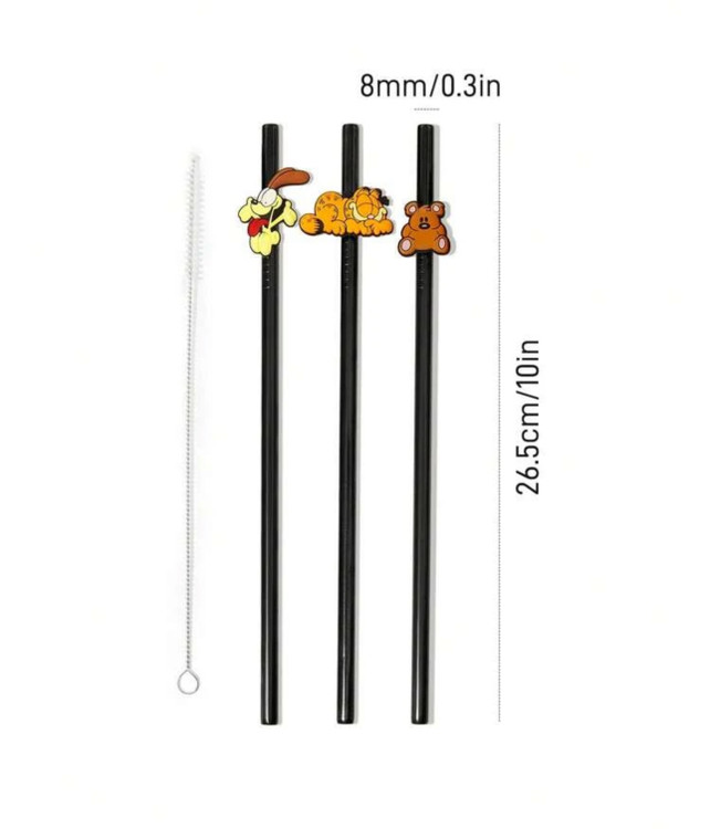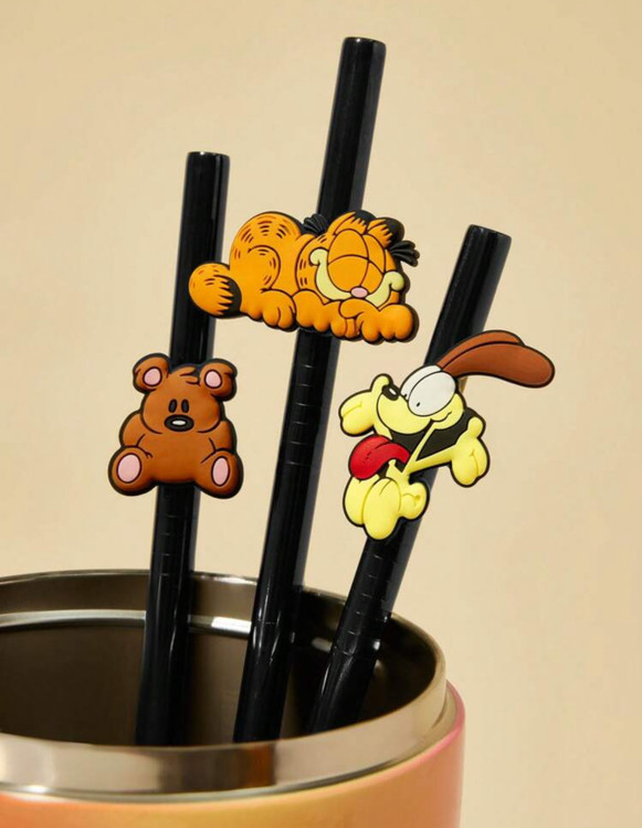 GARFIELD X SHEIN 3 PCS Cute Cartoon Graphic Straw Tip Cover,With Straw,Gifts