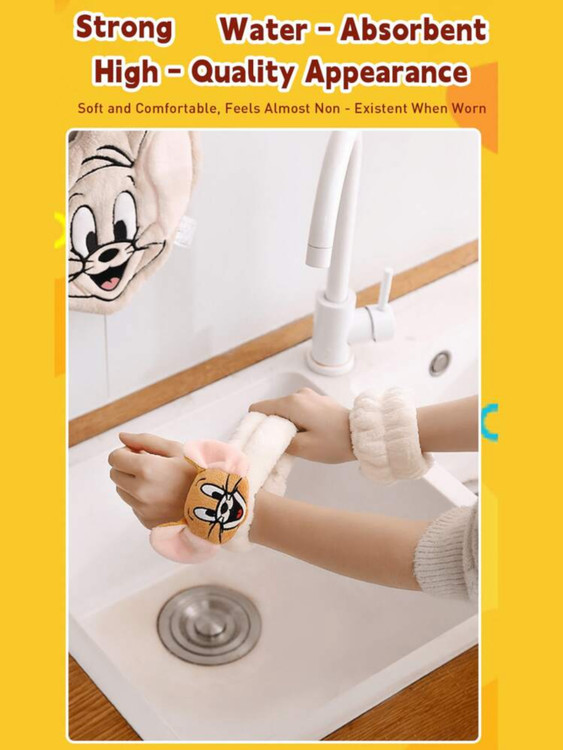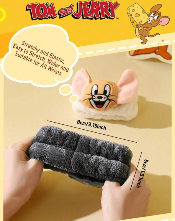 Tom And Jerry Face Washing Wristbands, Soft Absorbent Plush Material For Kids & Adults