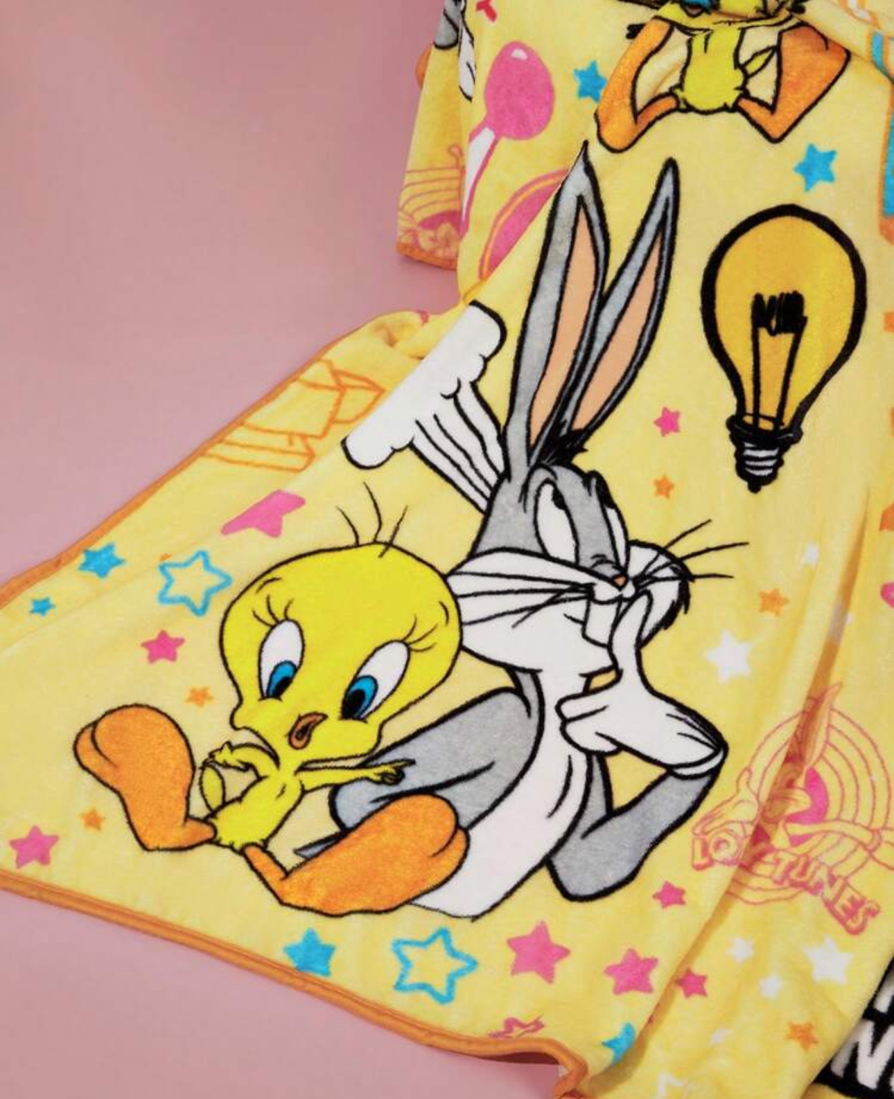 مشخصات LOONEY TUNES X SHEIN Yellow Cartoon Letter Printed Flannel Square Blanket: