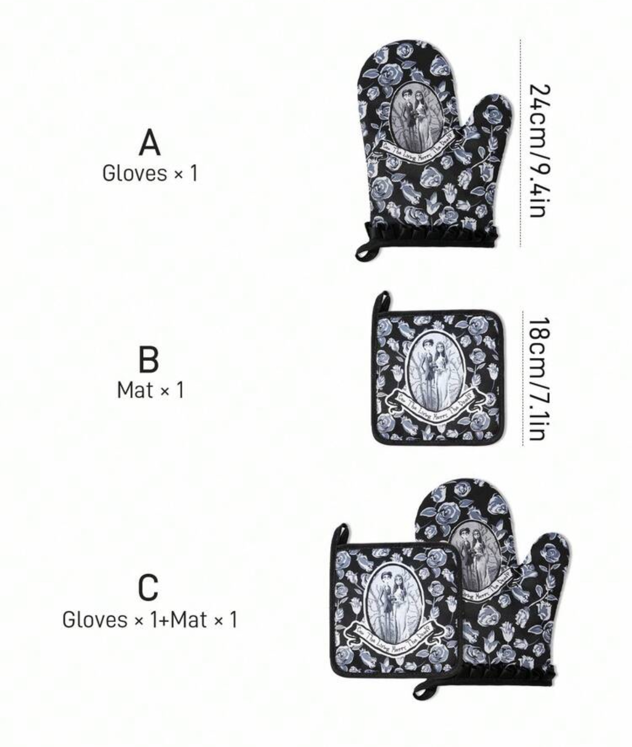 مشخصات Corpse Bride X SHEIN Vintage Black Satin Ruffled Kitchen Heat Resistant Set: