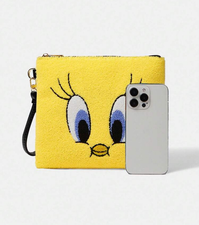 LOONEY TUNES X SHEIN Cartoon Embroidered Zipper Pouch, Fashion & Cute Clutch