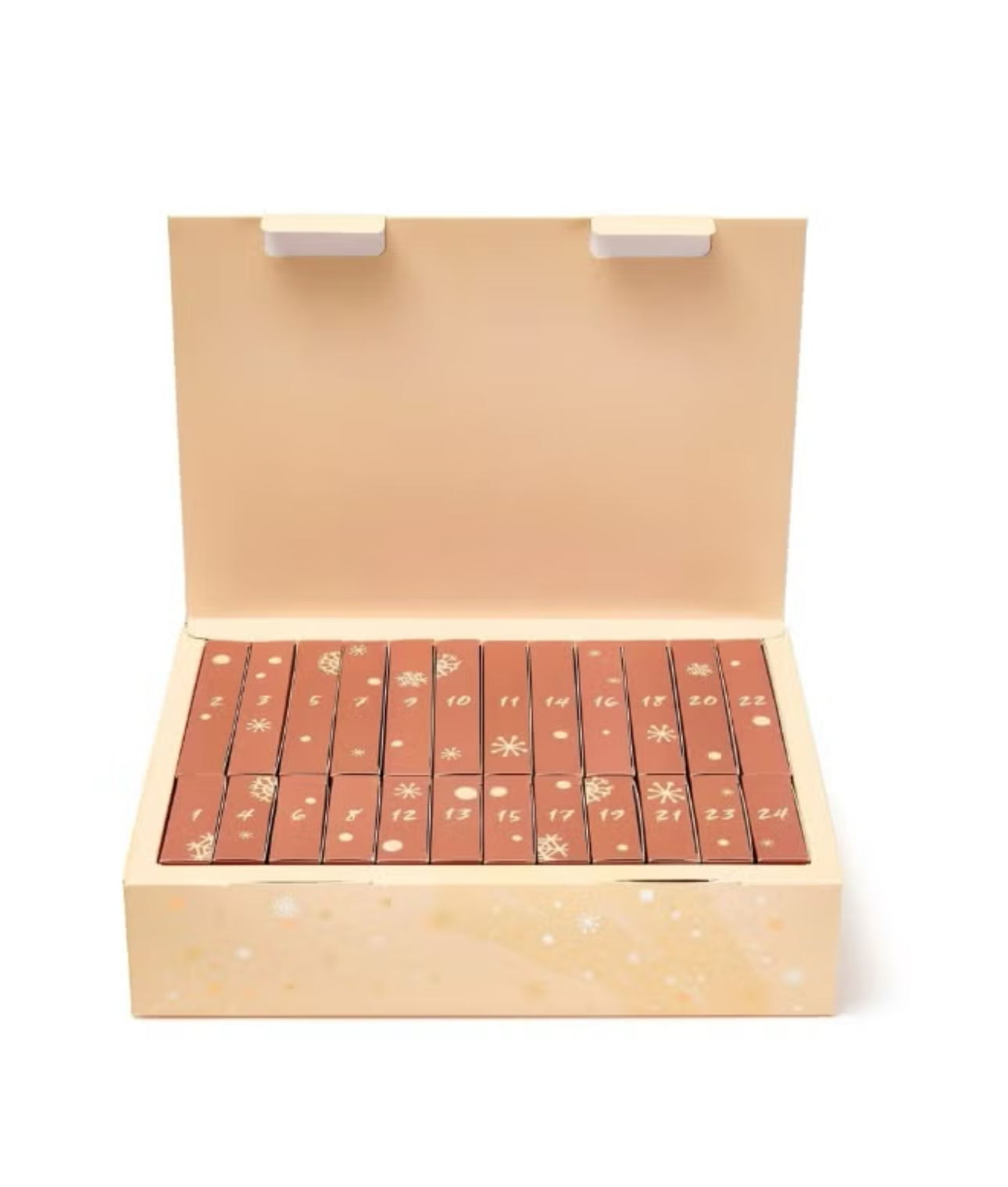 - 🔹 طراحی: جعبه شیک با ۲۴ درب سورپرایزی برای باز کردن روزانه تا کریسمس