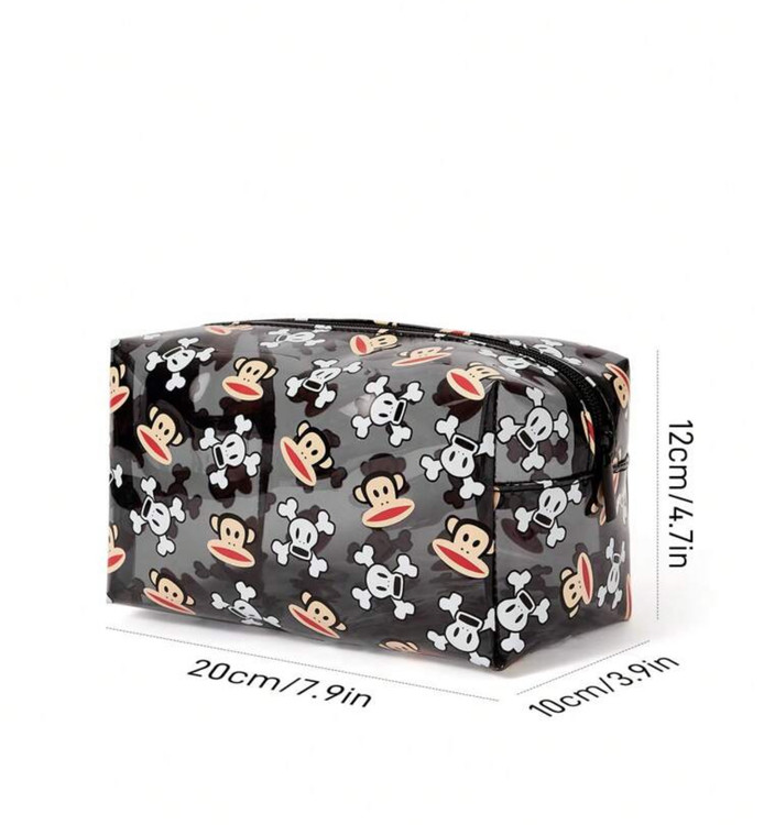 Paul Frank X SHEIN 1pc Cute Cartoon Monkey Pattern Printed Transparent Large Capacity Cosmetic Bag