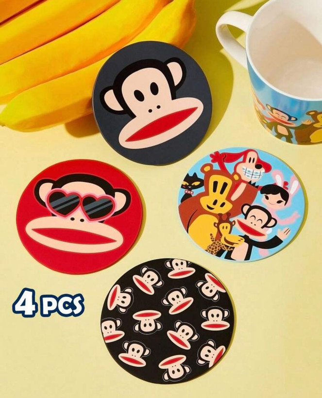 مشخصات Paul Frank X SHEIN 4pcs PU Leather Cartoon Monkey Coasters:
