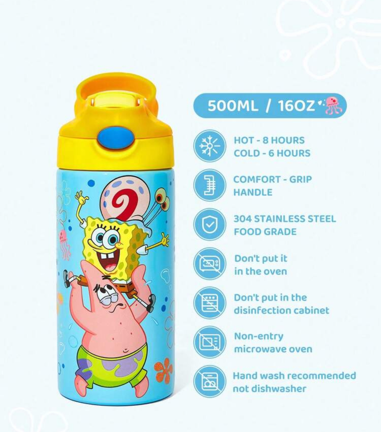 دیدن محصولات مرتبطمشخصات SpongeBob SquarePants X SHEIN 16oz / 500ml Stainless Steel Leak-Proof Bottle: