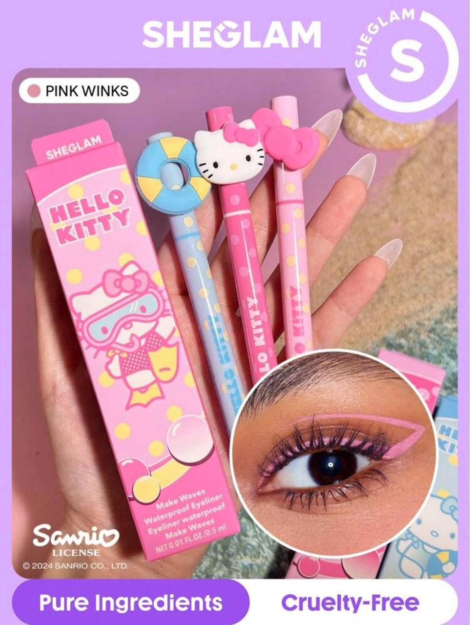 ✅ خط چشم ضد آب Hello Kitty | SHEGLAM Make Waves – سه رنگ متنوع و جذاب با رنگ مشکی شن.