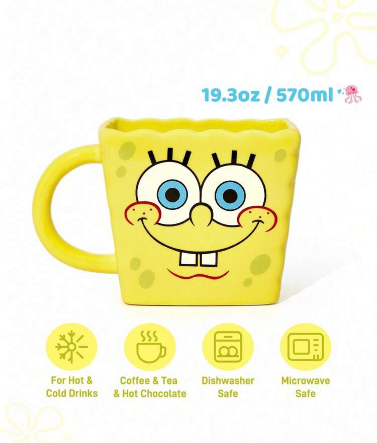SpongeBob SquarePants X SHEIN 16.2oz/480ml Cartoon Pattern Ceramic Mug 🧽☕