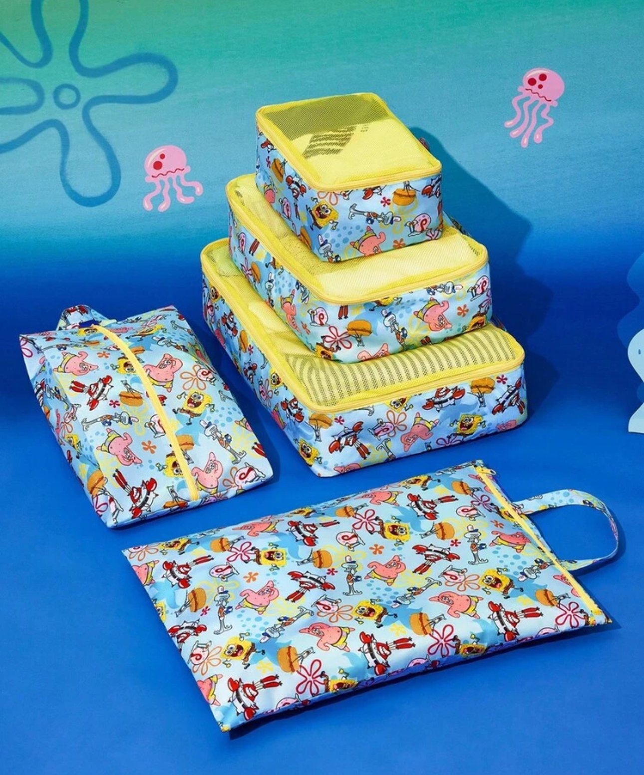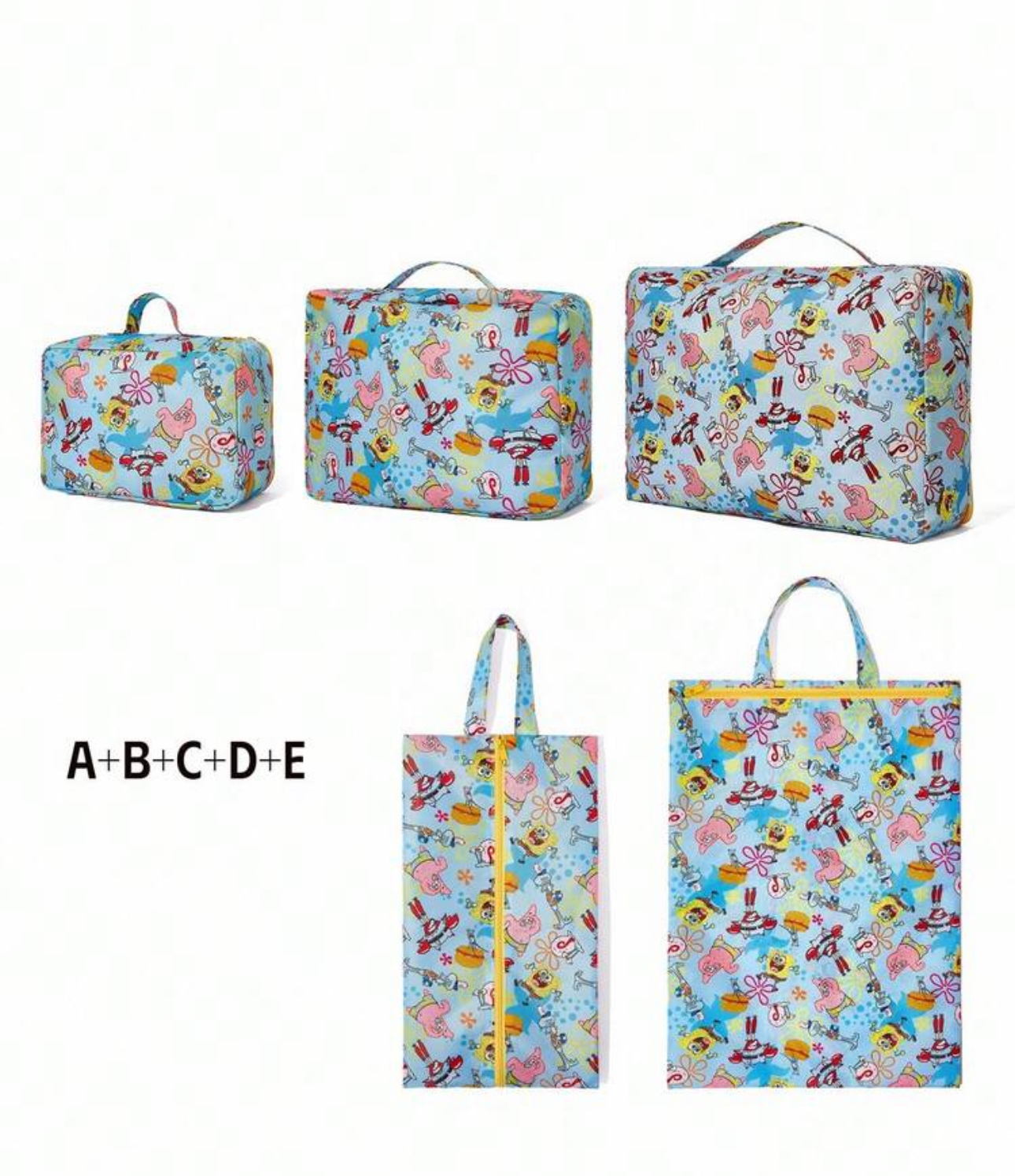 SpongeBob SquarePants X SHEIN Cute Cartoon Print Polyester Travel Storage Bag 🧽🎒