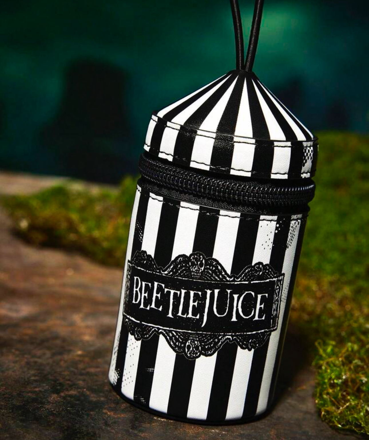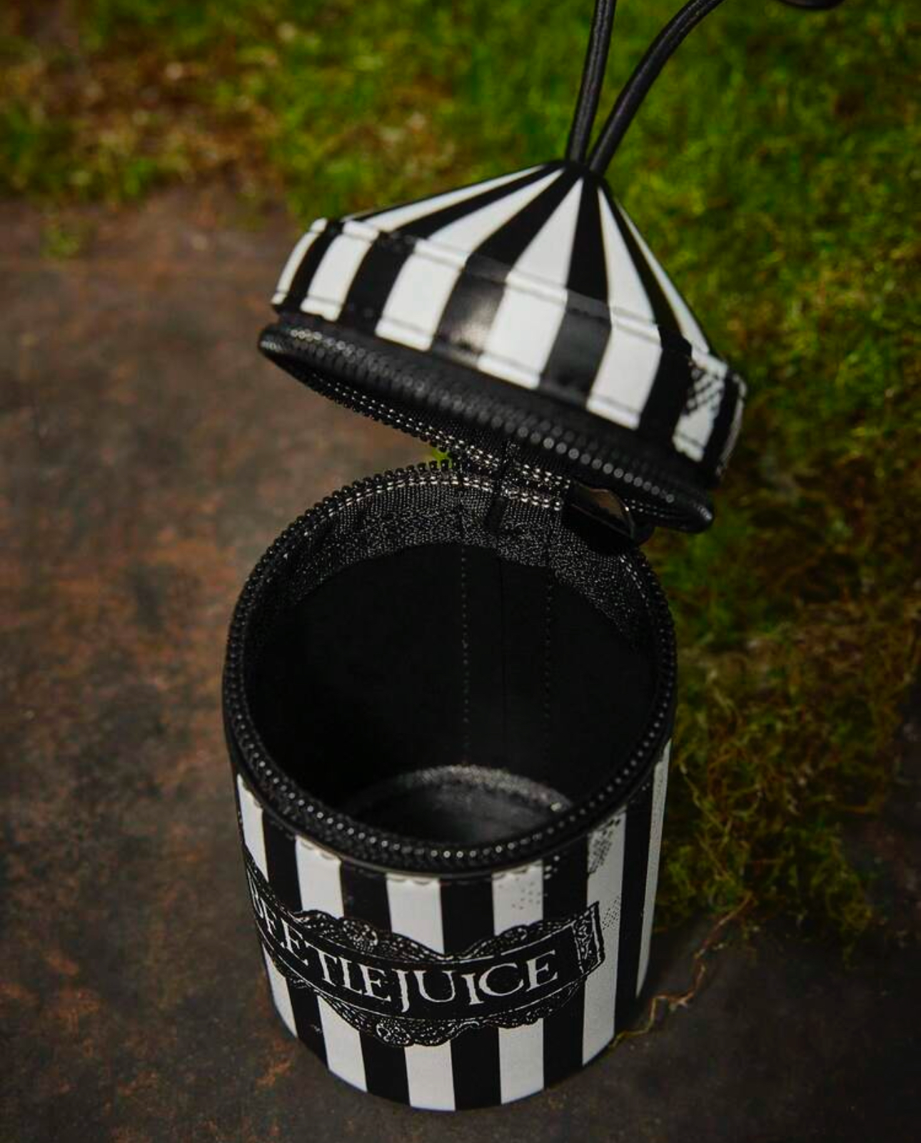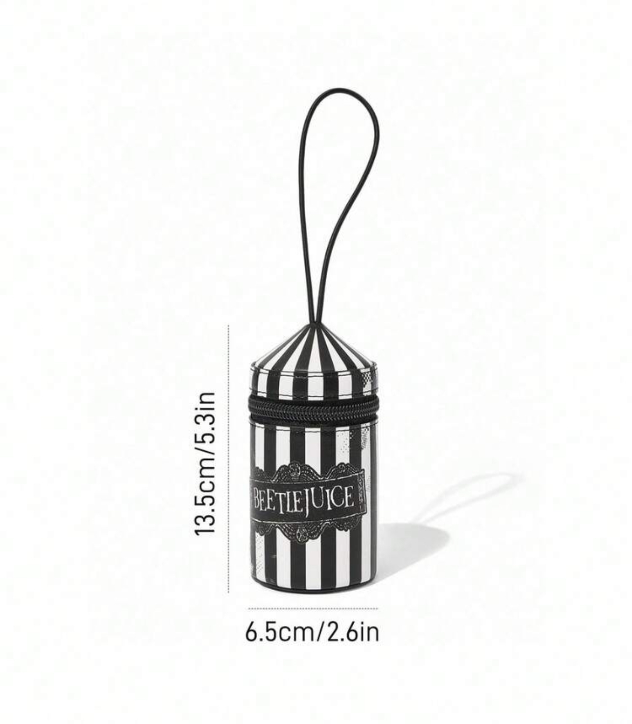 Beetlejuice X SHEIN PU Leather Striped Cylindrical Coin Purse 🖤🤍🎃