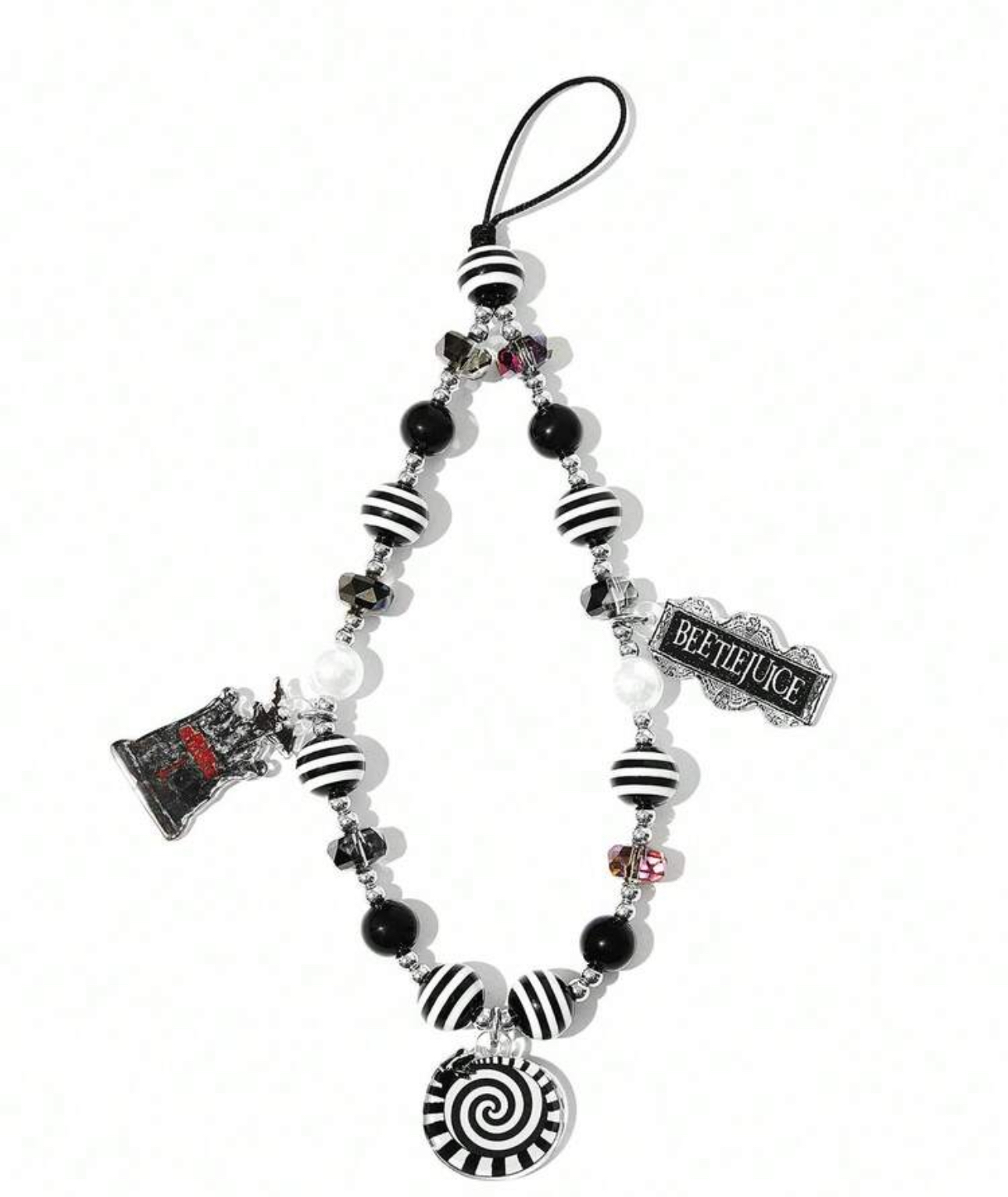 Beetlejuice X SHEIN Acrylic Beaded Phone Lanyard 📱🖤🤍🎃