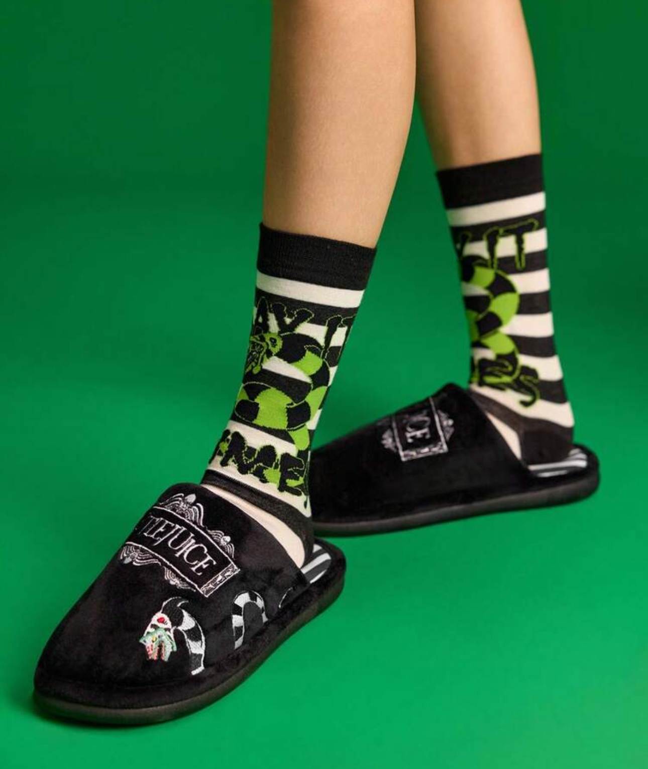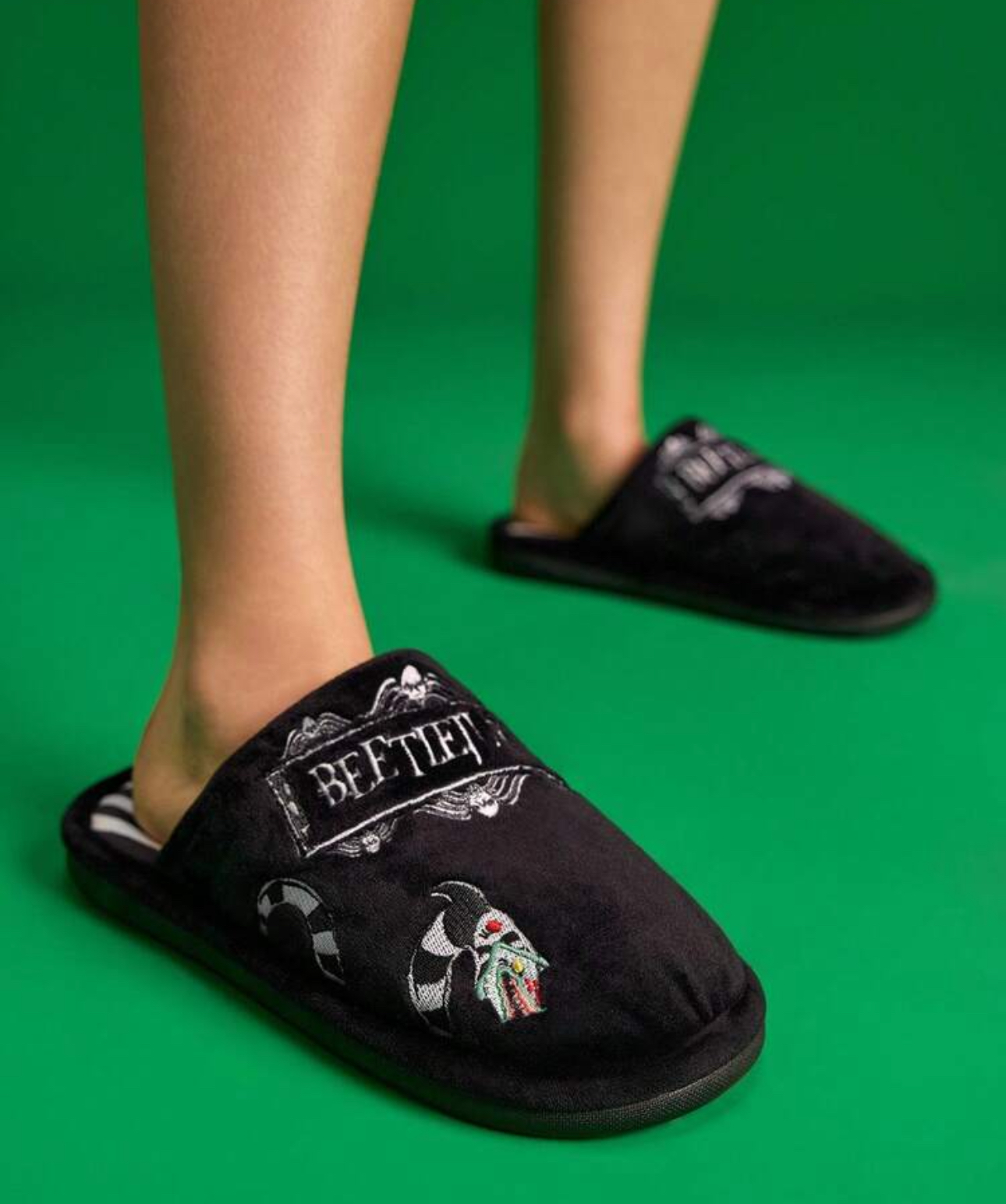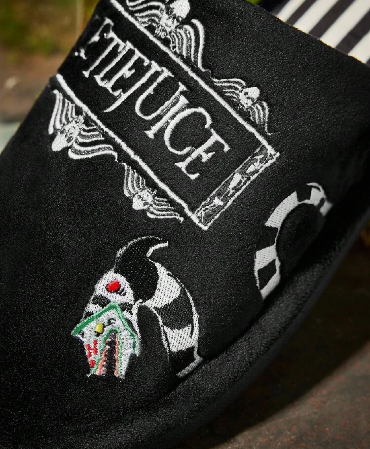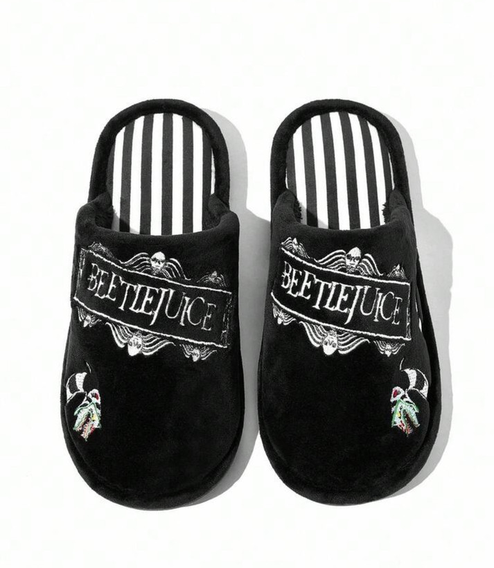 Beetlejuice X SHEIN Black Embroidered Indoor Slippers 🥿🖤🎃