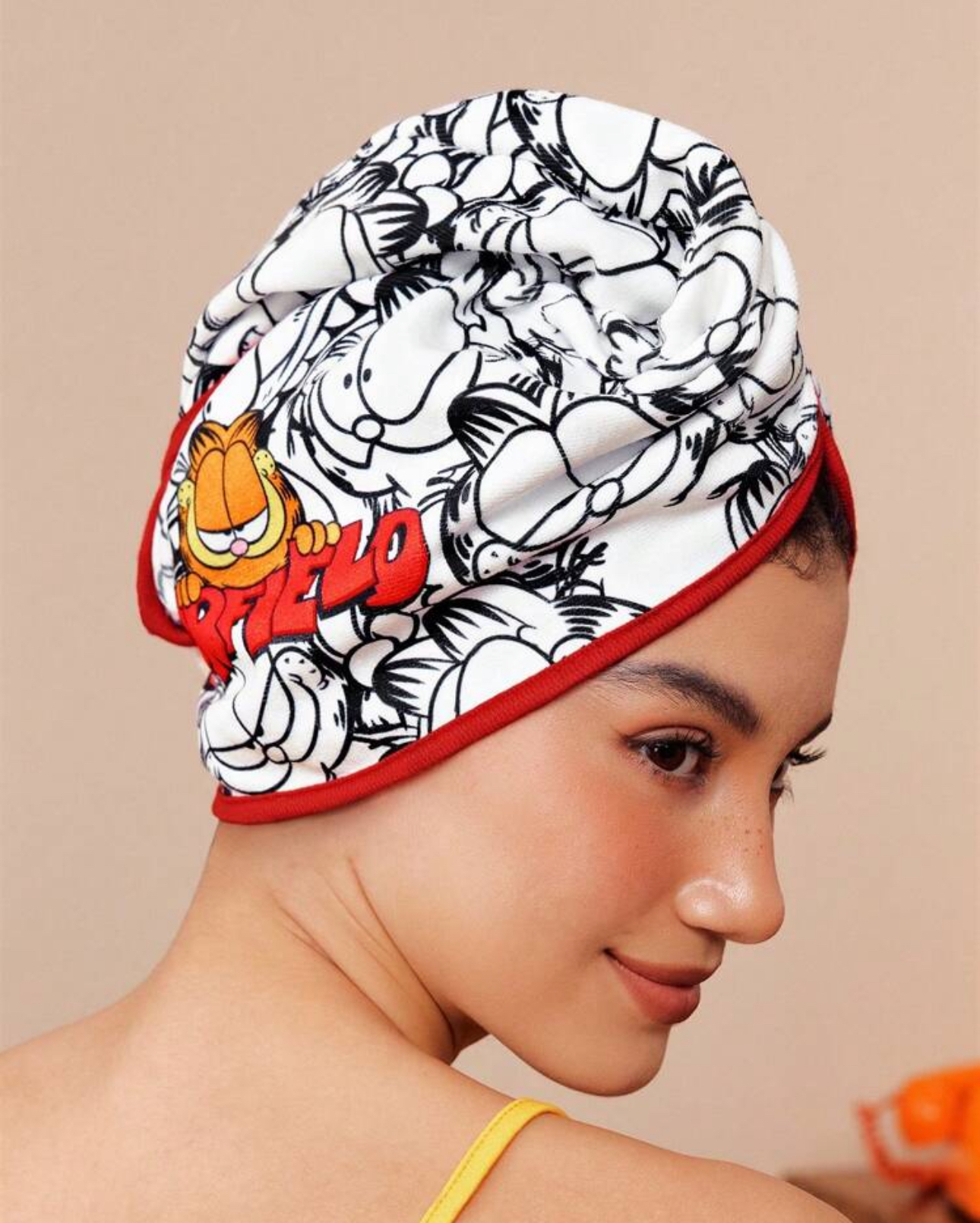 GARFIELD X SHEIN Coral Fleece Cute Embroidered Hair Drying Cap 🐱💛🛁