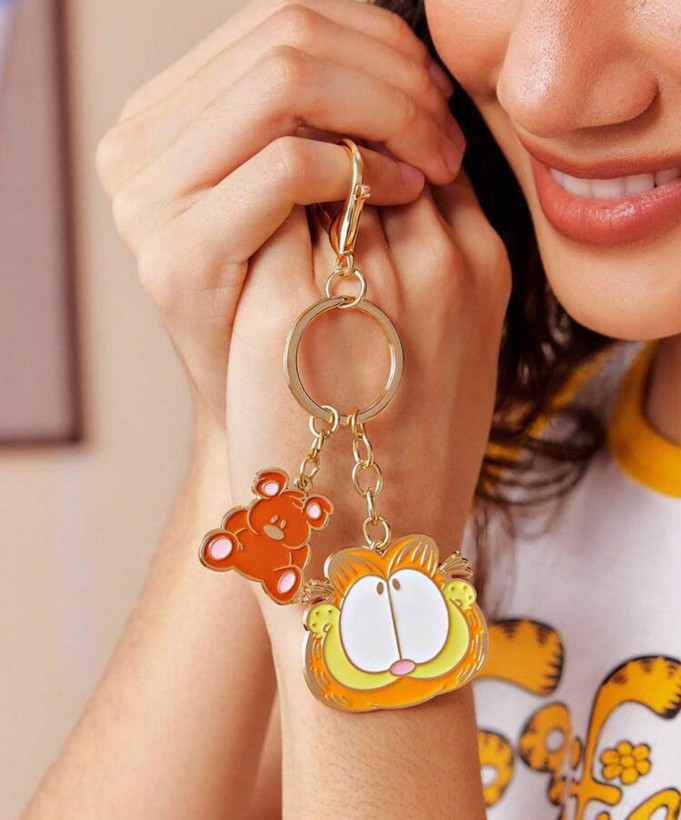 دیدن محصولات مرتبطGARFIELD X SHEIN Cute Cartoon Cat & Bear Keychain – Gold 🐱🧸✨
