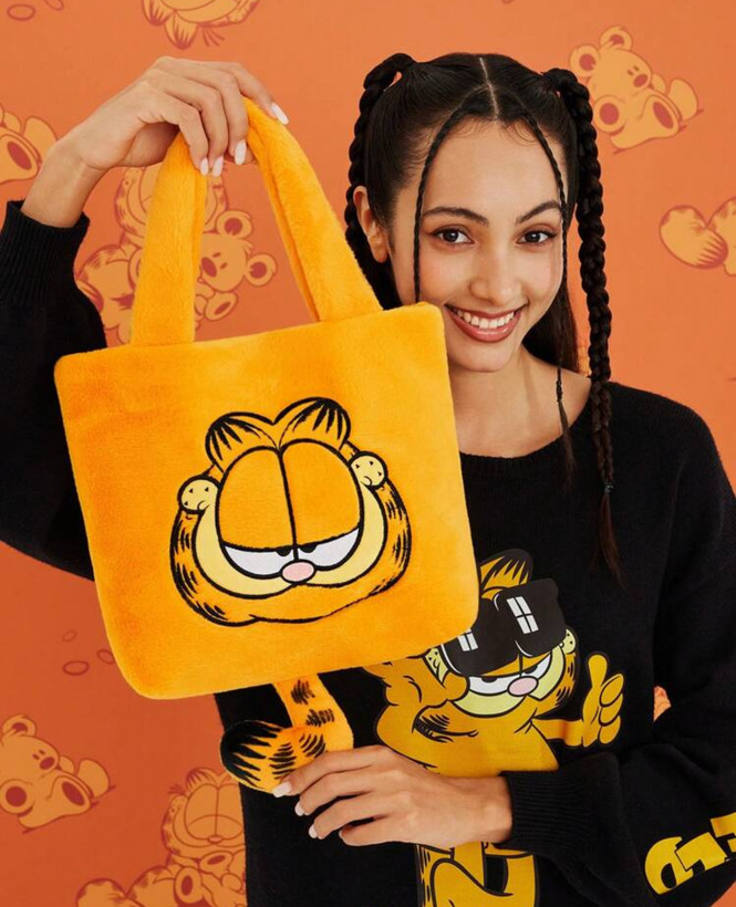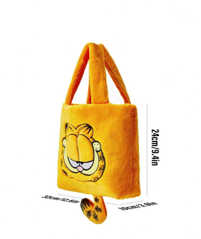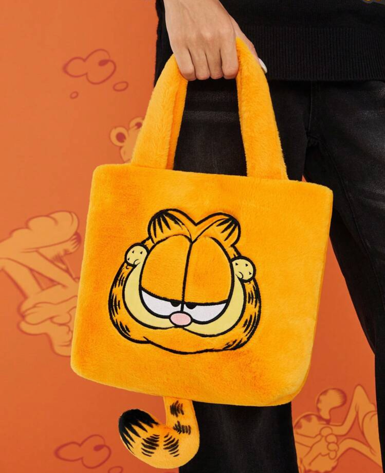 GARFIELD X SHEIN Cartoon Cat Embroidery Plush Orange Tote Bag 🐱👜