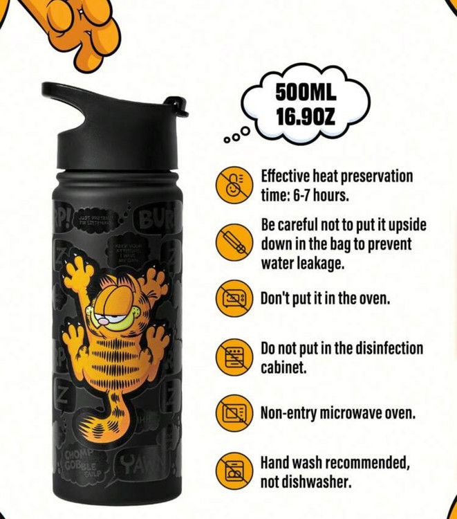 GARFIELD X SHEIN Cartoon & Letter Print Insulated Flask 🐱🥤