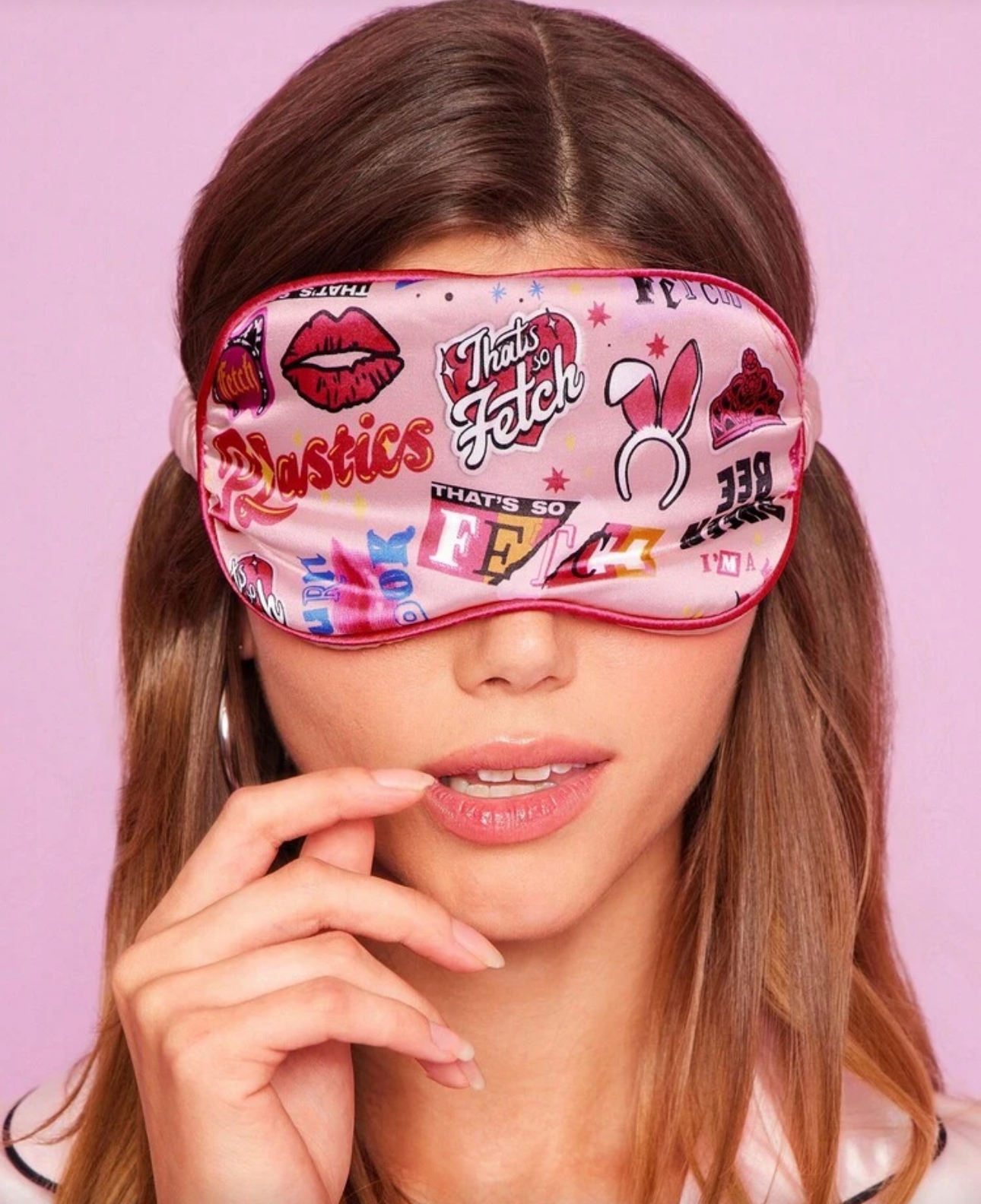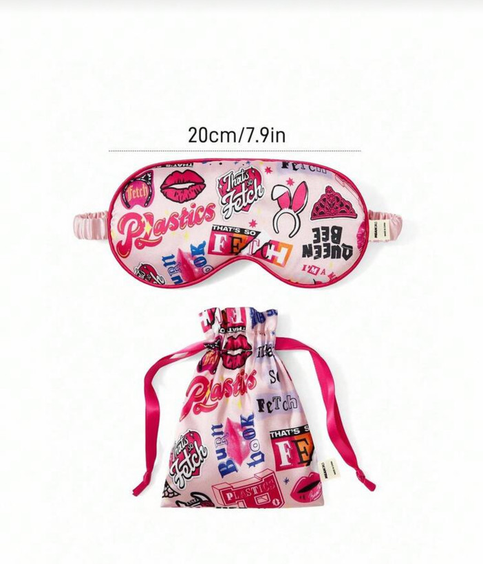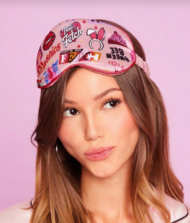 - طراحی: چشمبند صورتی با نوشته گرافیکی الهامگرفته از فیلم Mean Girls 🎬💗