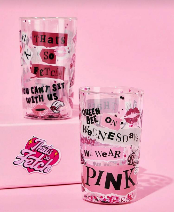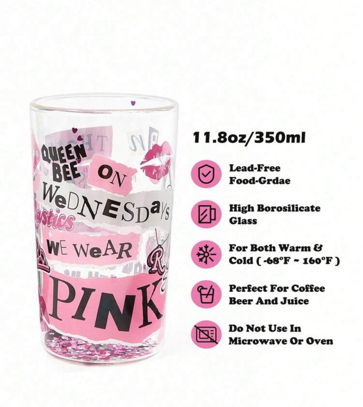 Mean Girls X SHEIN 1pc Letter Graphic Double-Wall Borosilicate Glass Cup 💖☕✨