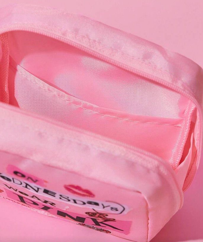 - طراحی: چاپ کارتونی با الهام از فیلم Mean Girls و نوشتههای معروف مانند “That’s So Fetch” و “On Wednesday We Wear Pink” 🎬💅