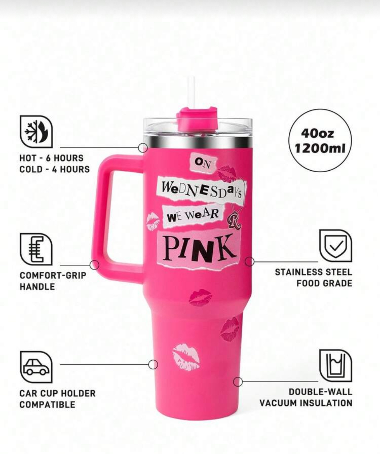 Mean Girls X SHEIN 40oz Letter Graphic Tumbler With Handle 💖🥤✨