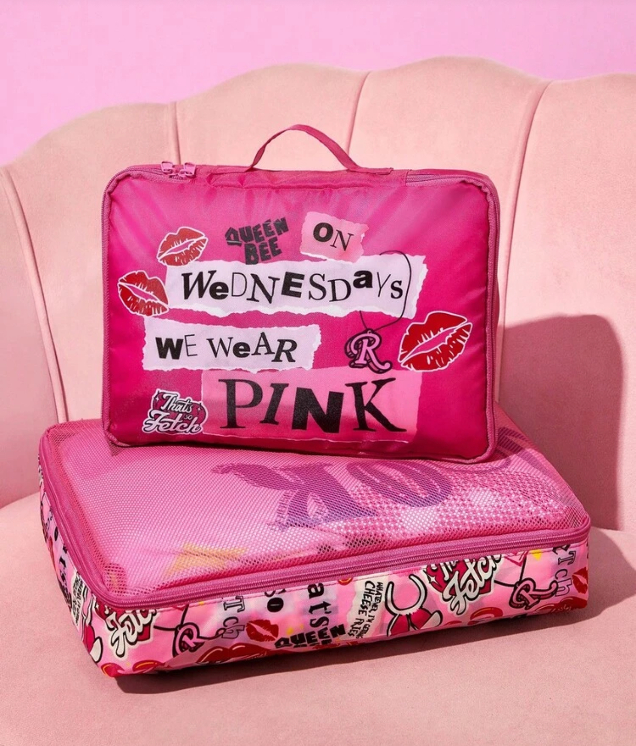 Mean Girls X SHEIN 2pcs Cute Letter Graphic Polyester Travel Storage Bags 💖👜✨