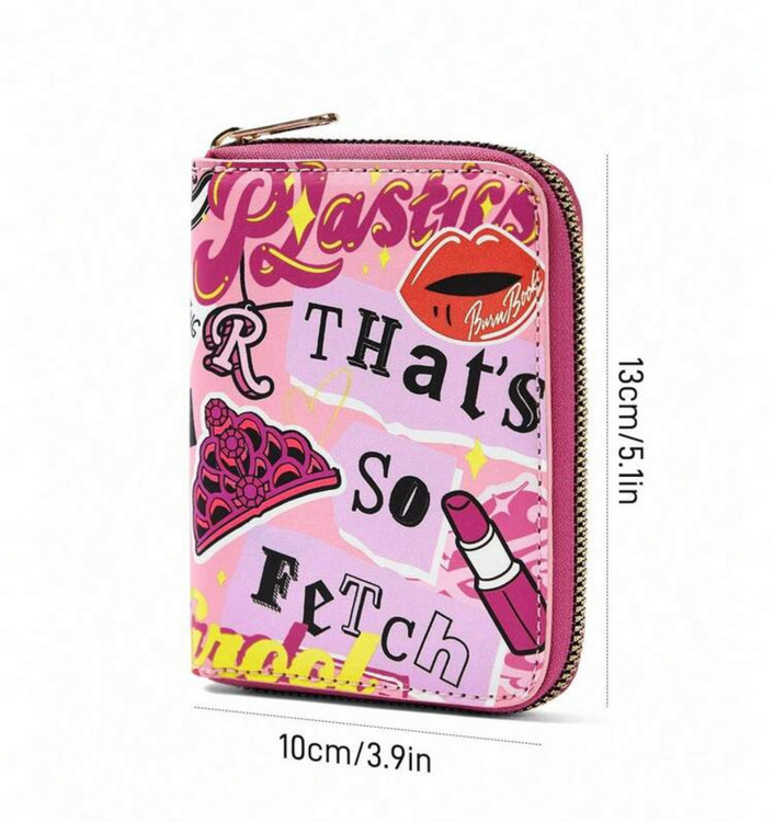 Mean Girls X SHEIN 1pc Cute Cartoon Print Zipper PU Leather Short Wallet