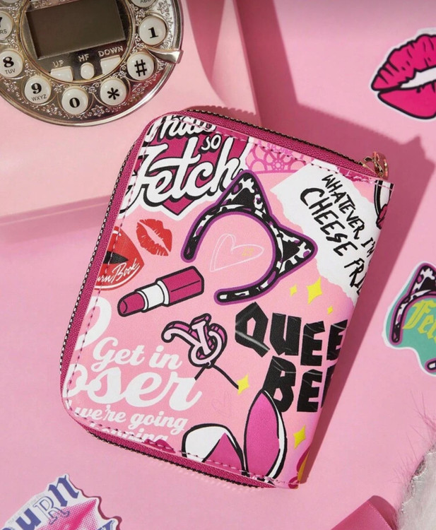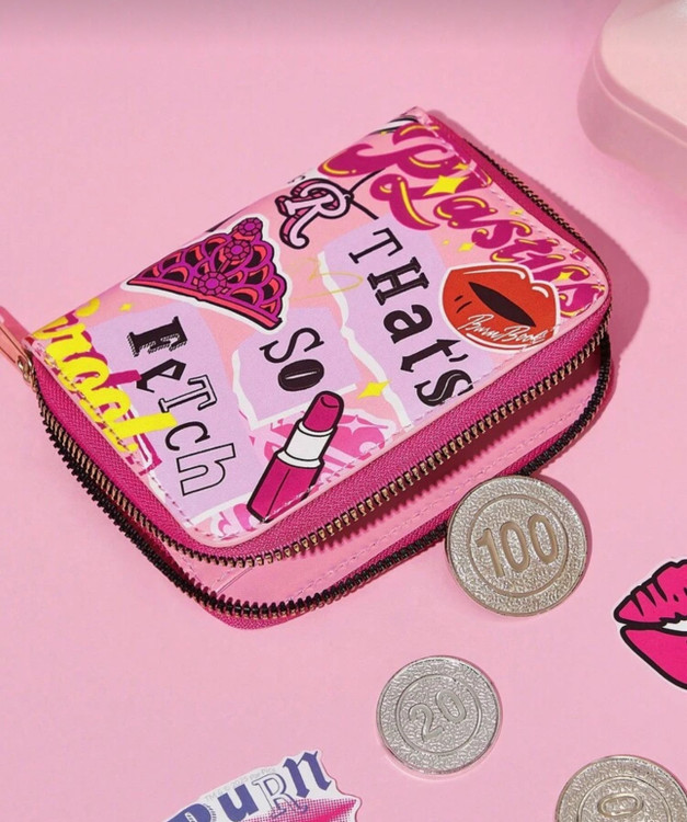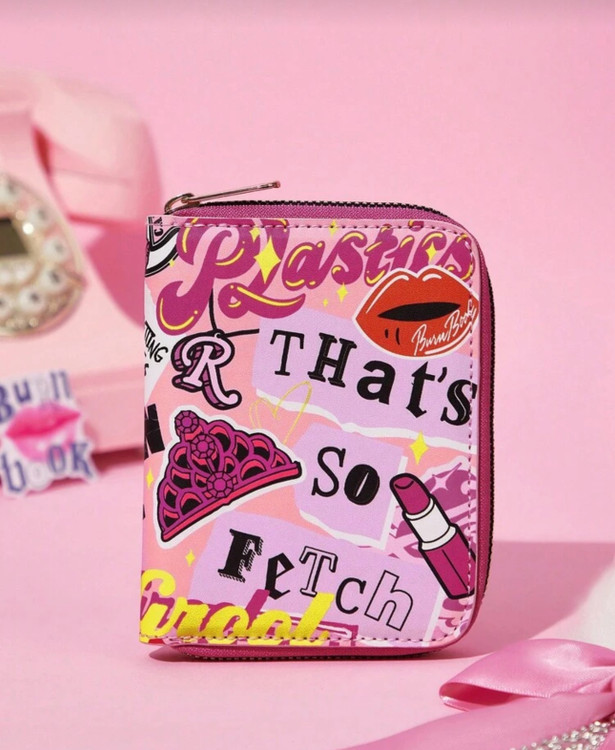 Mean Girls X SHEIN 1pc Cute Cartoon Print Zipper PU Leather Short Wallet 💖👛✨
