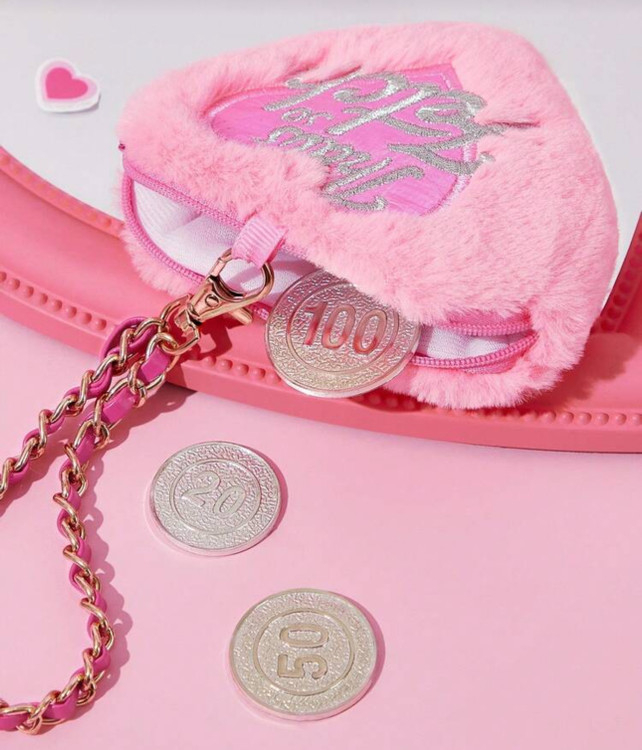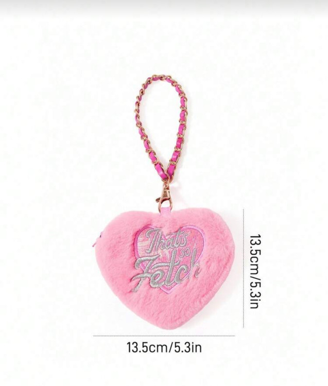 Mean Girls X SHEIN 1pc Heart-Shaped Letter Embroidery Plush Coin Purse 💖💌✨