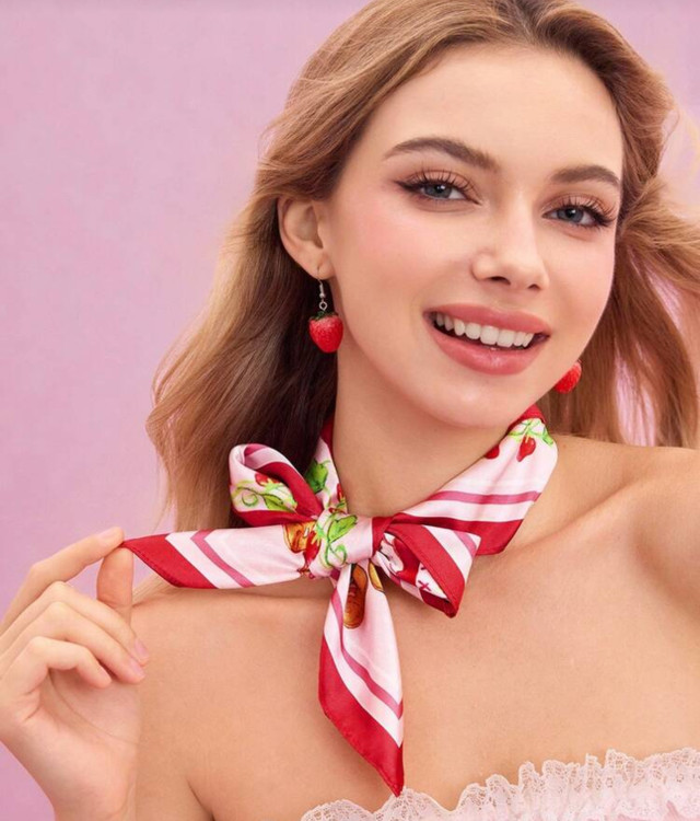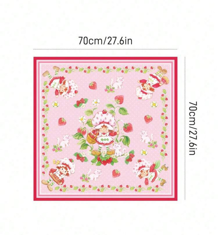 Strawberry Shortcake X SHEIN Fashionable Sweet Pink Smooth & Soft Satin Square Scarves Polka Dot Strawberry Women Bandana