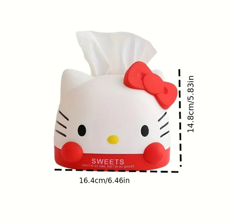 جعبه دستمال کاغذی Sanrio Hello Kitty با طراحی فانتزی و کریسمسی، انتخابی زیبا و کاربردی برای دکور خانه و میز است. این هولدر بامزه با پاپیون صورتی نمادین هلو کیتی ساخته شده از پلاستیک مقاوم، جلوهای شاد و جشنوارهای به فضای شما میبخشد.