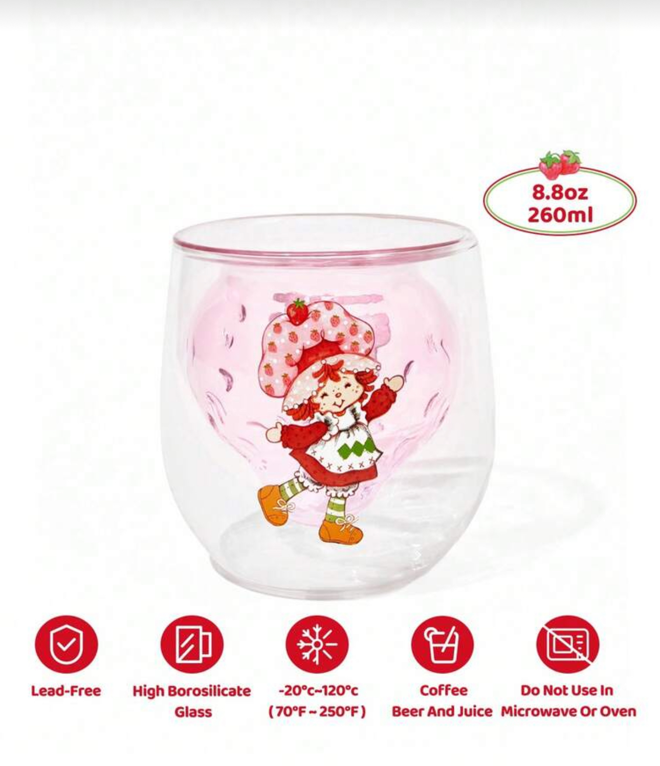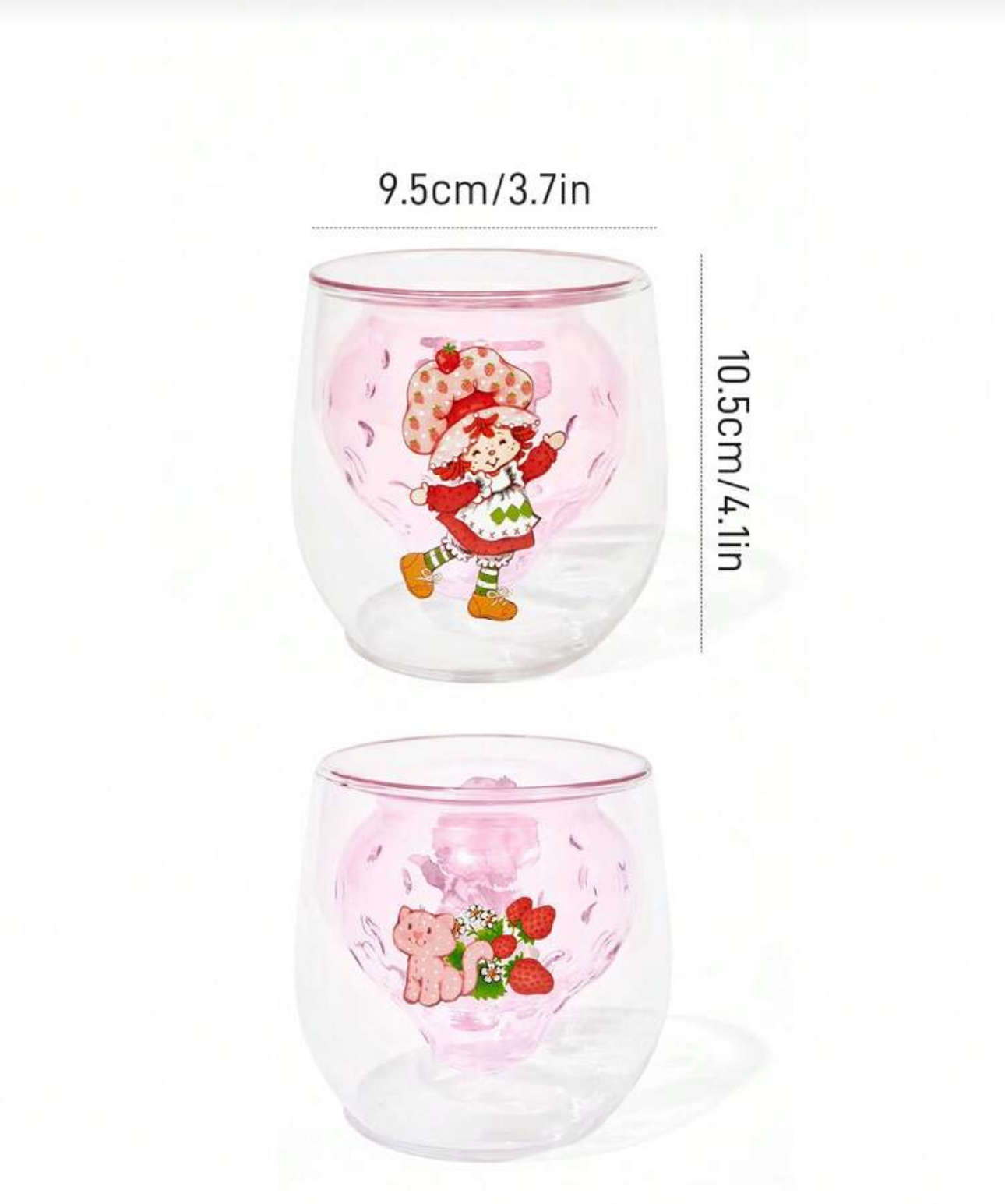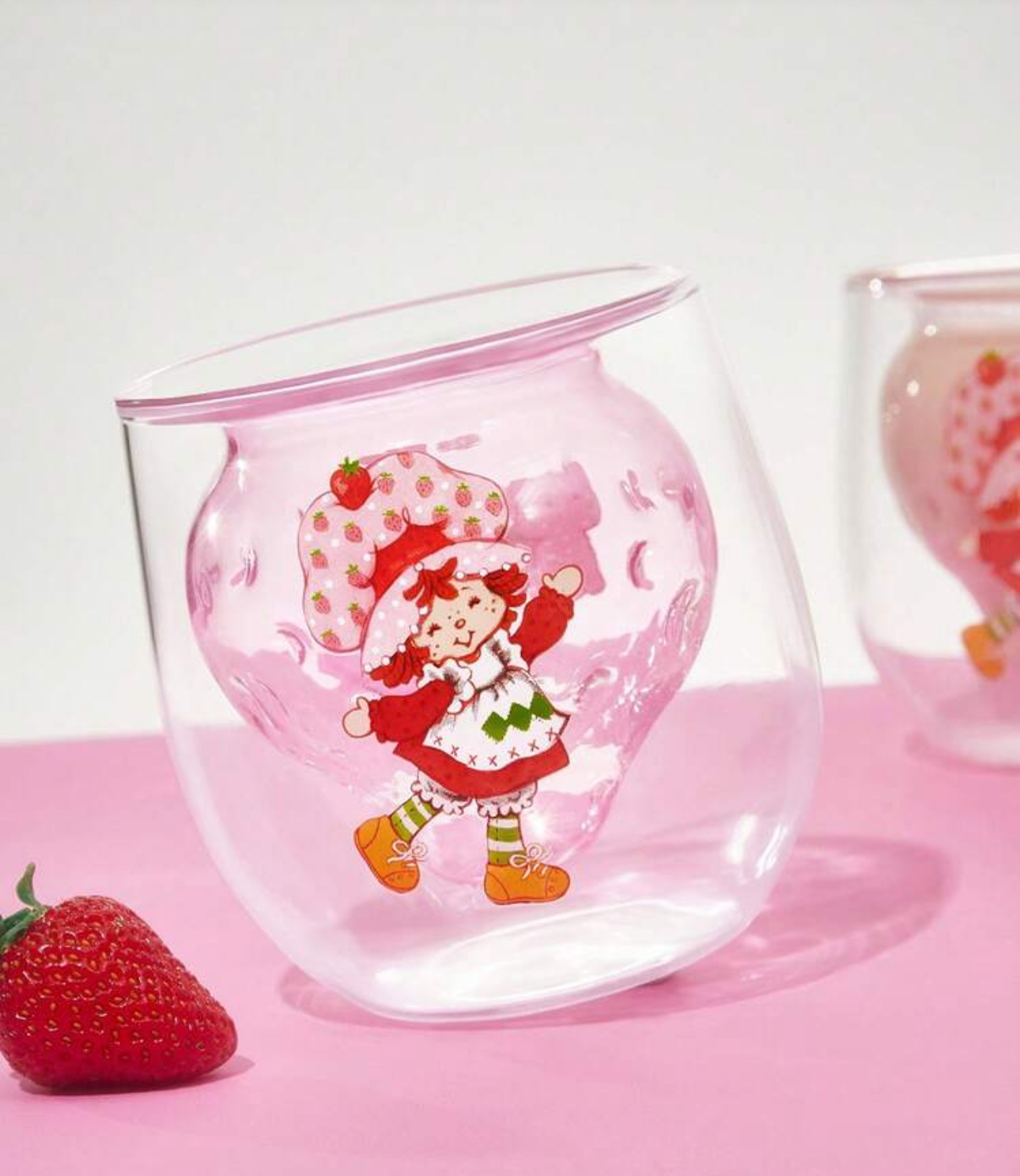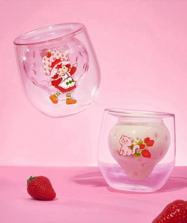نام محصول: لیوان شیشهای دوجداره شخصیت کارتونی Strawberry Shortcake X SHEIN – ۷.۱ اونس / ۲۱۰ میلیلیتر