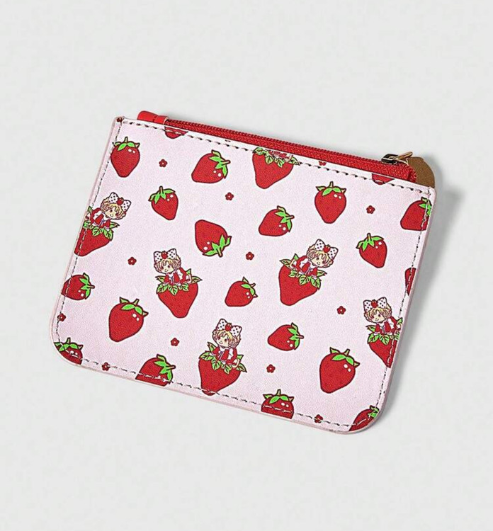 ROMWE Kawaii Full Print Strawberry Pattern Card Holder Coin Purse