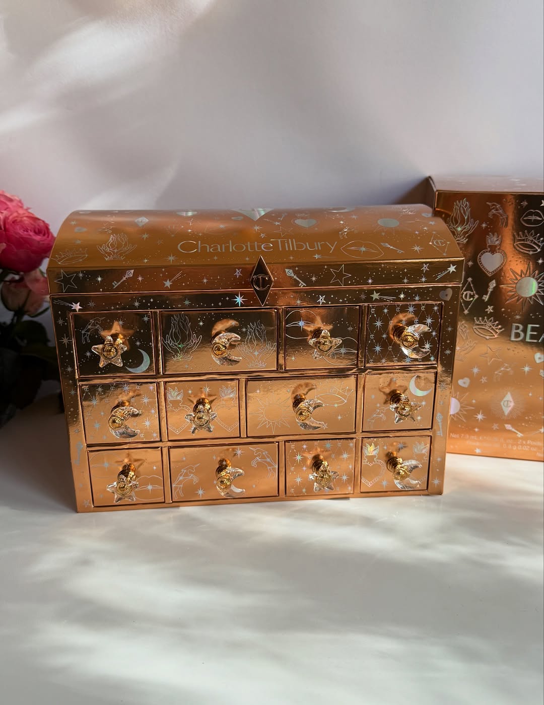 جعبهی لوکس و خاص «Charlotte’s Beauty Treasure Chest» از برند پرطرفدار Charlotte Tilbury، تقویم آرایشی سال ۲۰۲۵ است که با طراحی مجلل و درخشان خود، یک هدیه فراموشنشدنی برای عاشقان زیبایی به شمار میرود. این مجموعه شامل ۱۲ کشو با جواهرات پنهان آرایشی و مراقبتی است که از میان آنها، ۵ محصول فولسایز و ۷ محصول مینی سایز انتخاب شدهاند.