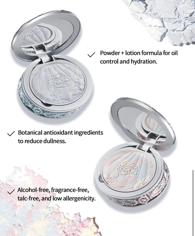 پودر سبک و نرم برای تثبیت آرایش و ایجاد درخشش لطیف صدفی روی پوست.