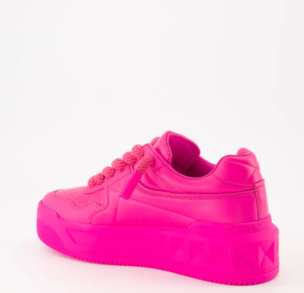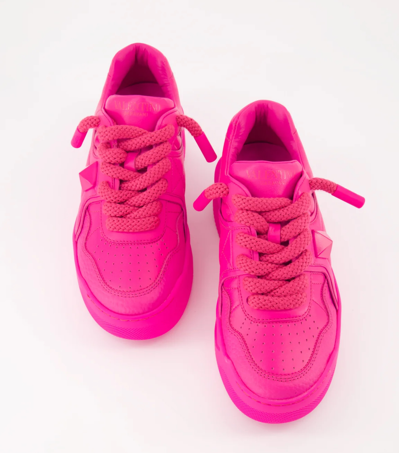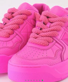 کتونی چرمی ساقدار لژدار مدل پرچدار (رنگ سرخابی – باربی پودر)