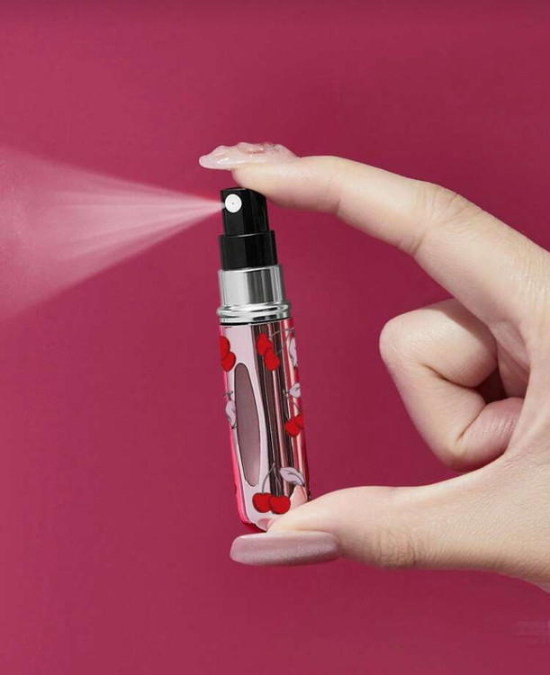 بطری اسپری عطر مینی با طراحی بتی بوپ و طرح گیلاس، ترکیبی از زیبایی، کاربرد و راحتی — مناسب برای بانوانی که عاشق جزئیات شیک و فانتزی هستند